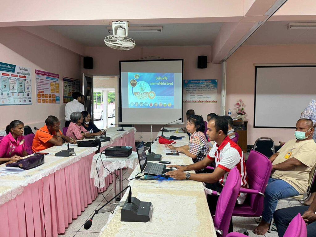 ในการนี้ ผศ.ดร.อมรรัตน์ ชุมทอง ได้ถ่ายทอดความรู้เกี่ยวกับการผลิตปุ๋ยอินทรีย์และการใช้ประโยชน์ วัสดุอุปกรณ์ที่ใช้ในการทำปุ๋ยชีวภาพและขั้นตอนการจัดเตรียมวัสดุอุปกรณ์ ขั้นตอนการทำปุ๋ยหมักชีวภาพ และวิธีการใช้และเก็บรักษาคุณภาพปุ๋ยชีวภาพ พร้อมทั้งมีการสาธิตการทำปุ๋ยหมักให้กับทางกลุ่มฯ เพื่อให้สามารถลงมือปฏิบัติเองได้ต่อไป