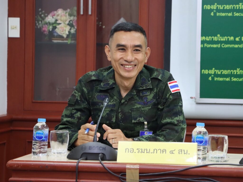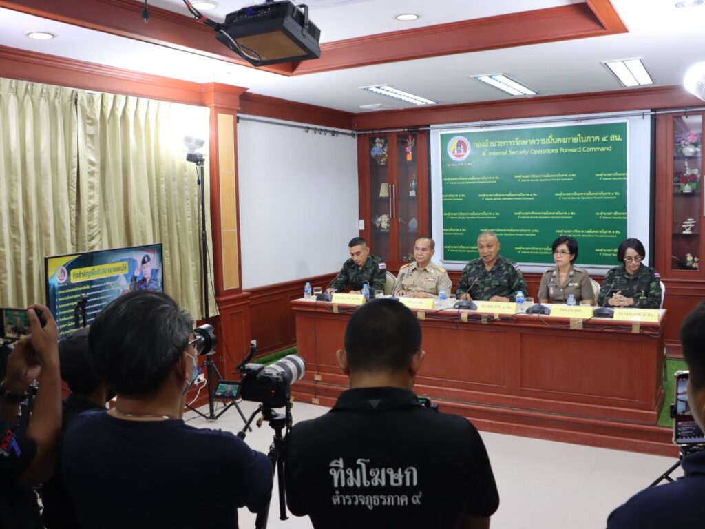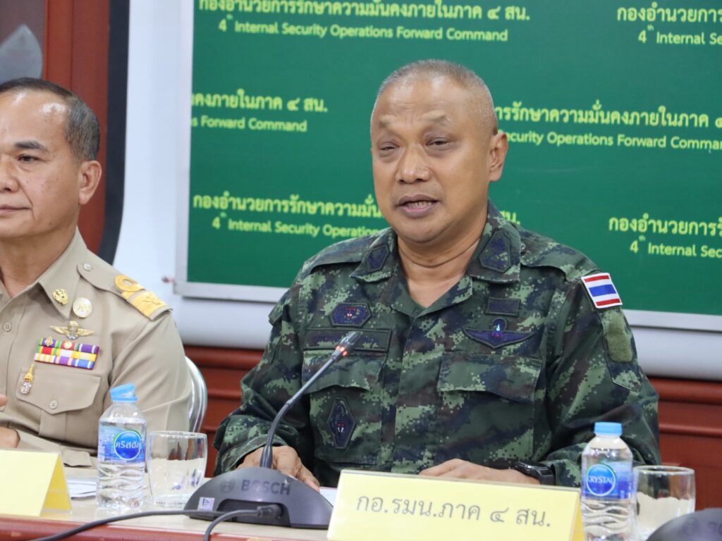 พันเอก ยุทธนาม เพชรม่วง โฆษก กอ.รมน.ภาค 4 ส่วนหน้า แถลงภาพรวมผลการดำเนินงานในไตรมาสแรกของปีงบประมาณ 2569 โดยระบุว่า หน่วยมุ่งเน้นการสร้าง “พื้นที่สีขาว” ที่ปลอดภัยและน่าอยู่ ผ่าน 8 กิจสำคัญเพื่อสันติสุขชายแดนใต้ ซึ่งในช่วง 90 วันที่ผ่านมา สถานการณ์ความไม่สงบมีแนวโน้มดีขึ้น เหตุการณ์ลดลง 11 เหตุการณ์ และผู้บาดเจ็บลดลง 17 ราย พร้อมรายงานความคืบหน้าคดีสำคัญกรณีปล้นร้านทองในพื้นที่อำเภอสุไหงโก-ลก จังหวัดนราธิวาส ซึ่งสามารถขยายผลออกหมายจับผู้เกี่ยวข้องรวม 17 ราย และอยู่ระหว่างติดตามจับกุม