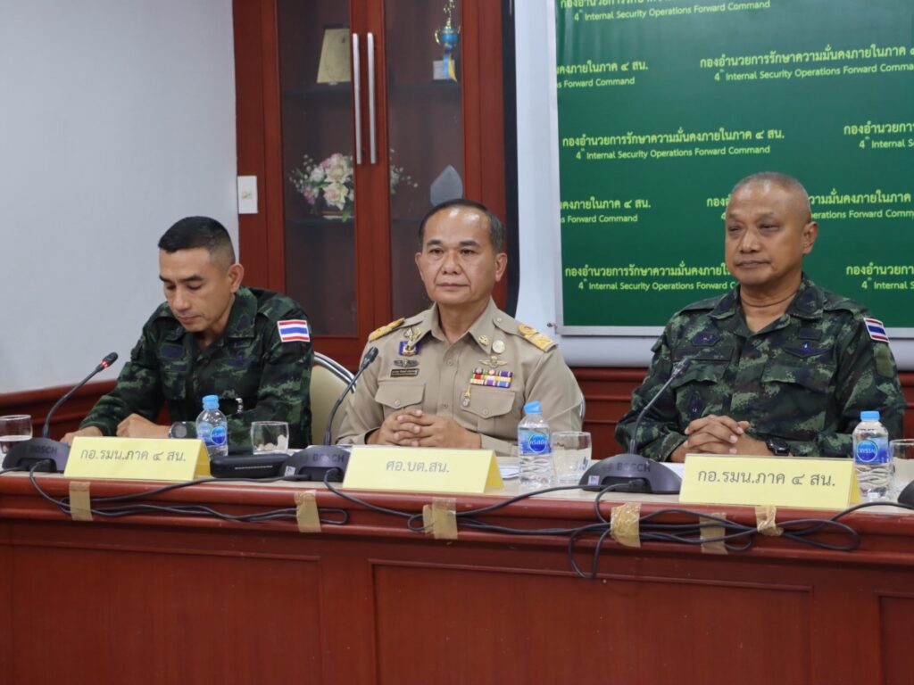 วันนี้ (30 ธันวาคม 2568) เวลา 16.00 น. ที่ศูนย์ประชาสัมพันธ์ กองอำนวยการรักษาความมั่นคงภายในภาค 4 ส่วนหน้า ได้จัดการแถลงข่าวสรุปผลการปฏิบัติงานของกองอำนวยการรักษาความมั่นคงภายในภาค 4 ส่วนหน้า และหน่วยขึ้นตรง ในรอบ 3 เดือน ตั้งแต่เดือนตุลาคม ถึงเดือนธันวาคม 2568 เพื่อรายงานผลการดำเนินงาน และสื่อสารข้อมูลที่ถูกต้อง เป็นรูปธรรม และเป็นเอกภาพ ผ่านสื่อมวลชนไปยังพี่น้องประชาชน โดยมี ผู้แทนหน่วยงานที่เกี่ยวข้องเข้าร่วม ประกอบด้วย พันเอก ยุทธนาม เพชรม่วง โฆษกกองอำนวยการรักษาความมั่นคงภายในภาค 4 ส่วนหน้า, ว่าที่พันตำรวจเอกหญิงเสาวลักษณ์ ตรีมรรค หัวหน้างานกิจการพลเรือน กองกำลังตำรวจจังหวัดชายแดนใต้, นาวาเอกจักรพงษ์ อภิมหาธรรม ผู้อำนวยการกองบริหารยุทธศาสตร์การพัฒนาจังหวัดชายแดนภาคใต้ ศูนย์อำนวยการบริหารจังหวัดชายแดนภาคใต้ และพันเอกหญิง ผุสดี เต็มยอด รองโฆษกกองอำนวยการรักษาความมั่นคงภายในภาค 4 ส่วนหน้า พร้อมด้วย พันเอก เอกวริทธิ์ ชอบชูผล หัวหน้าศูนย์ประชาสัมพันธ์ / รองโฆษก กองอำนวยการรักษาความมั่นคงภายในภาค 4 ส่วนหน้า