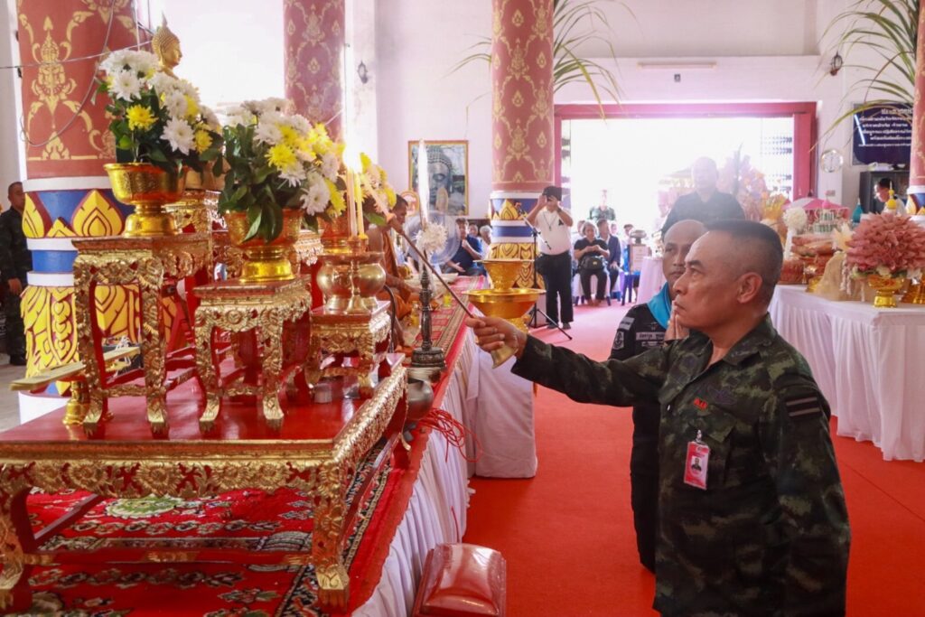 วันนี้ (2 พฤศจิกายน 2568) เวลา 12.10 น. ที่วัดราษฎร์สโมสร อำเภอรือเสาะ จังหวัดนราธิวาส พลตรี เฉลิมพงค์ คงบัว เลขาธิการกองอำนวยการรักษาความมั่นคงภายในภาค 4 ส่วนหน้า เป็นประธานในพิธีทอดกฐินสามัคคี เพื่อร่วมสมทบทุนสร้าง ฉัตรพระพุทธชินรัตนทักษิณธรรมราชา (หลวงพ่อโตชำปอกง) พระพุทธรูปศักดิ์สิทธิ์ประจำวัด และก่อสร้างกำแพงหลังพระประธานภายในวัด โดยในพิธีมี พันเอก ยุทธนาม เพชรม่วง รองเลขาธิการกองอำนวยการรักษาความมั่นคงภายในภาค 4 ส่วนหน้า , คณะผู้บังคับบัญชา , กำลังพลจากหน่วยในพื้นที่ และพุทธศาสนิกชนเข้าร่วมพิธีจำนวนมาก สำหรับยอดสมทบทุนร่วมทำบุญทอดกฐินสามัคคีจากพุทธศาสนิกชนในครั้งนี้ มียอดรวมทั้งสิ้น 522,099 บาท