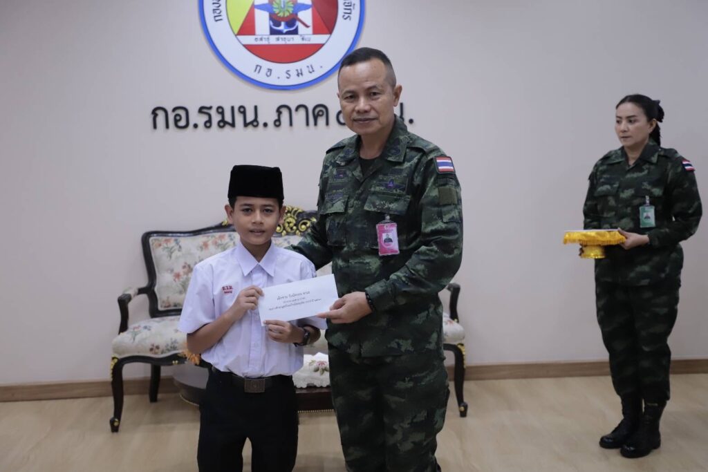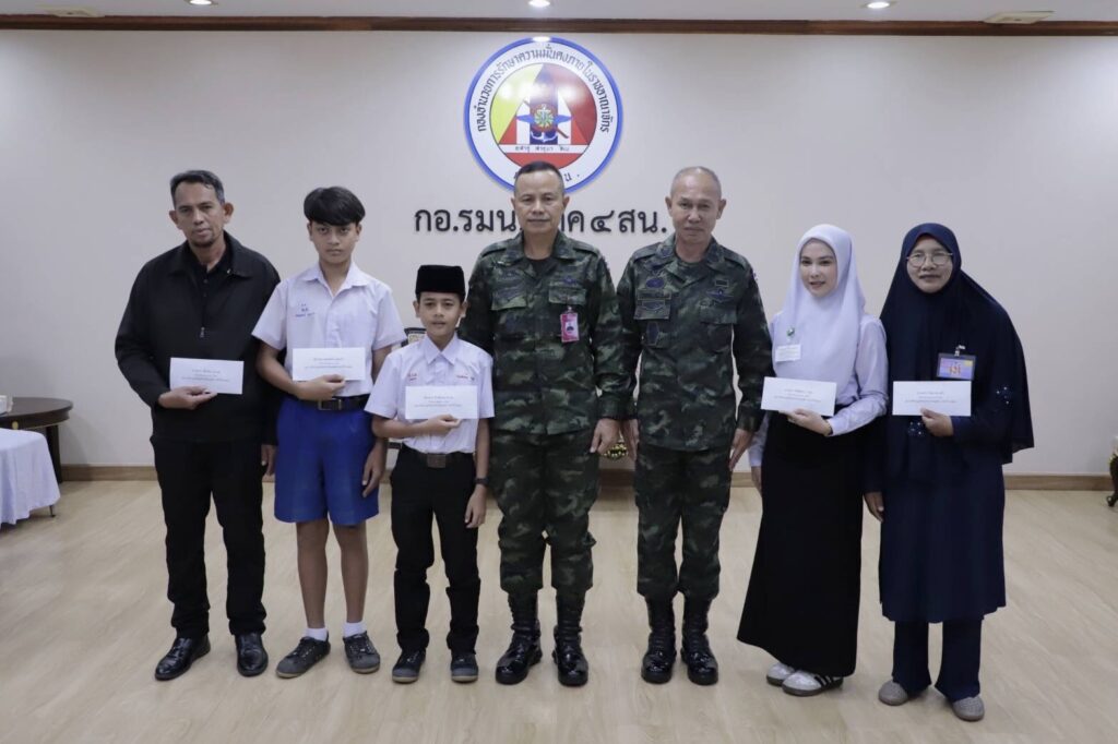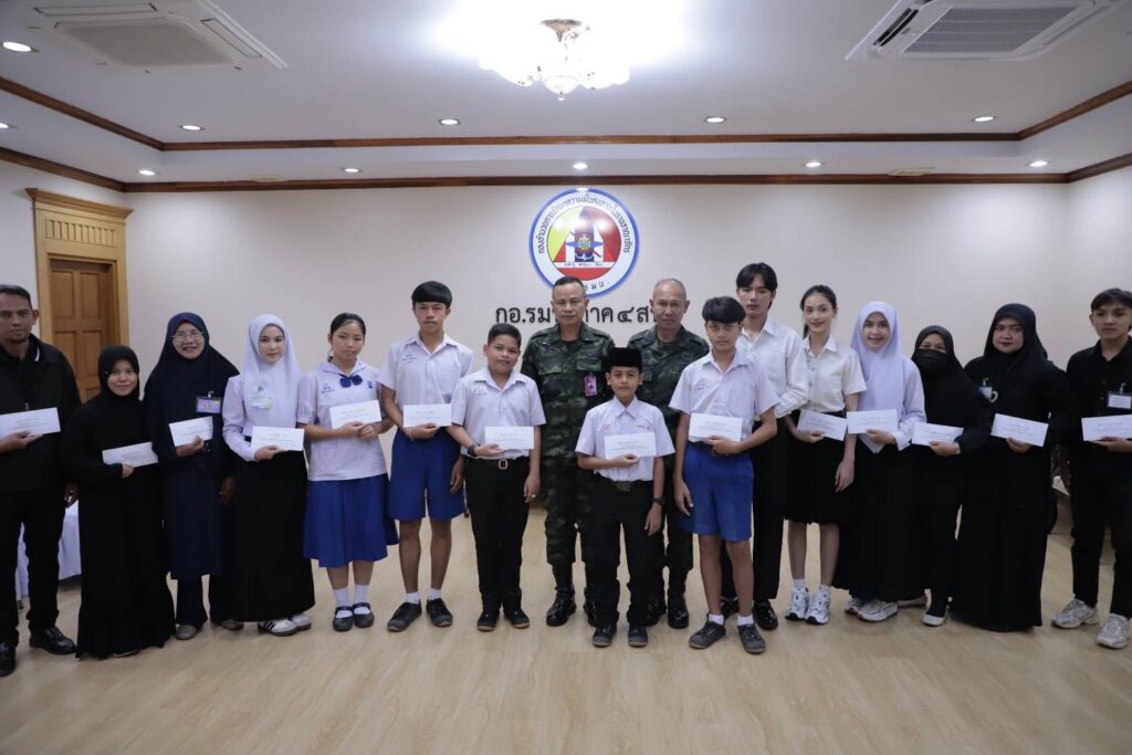 กอ.รมน.ภาค 4 สน. และภาคีเครือข่าย “สานฝัน การศึกษาเพื่อน้อง” มอบทุนการศึกษากว่า 1 แสน 9 หมื่นบาท ส่งตรงถึงมือเยาวชนคนเก่งชายแดนใต้ เพราะ “การศึกษา” นำมาซึ่งความสำเร็จ เปรียบเสมือนต้นไม้ที่งอกงามมั่นคง