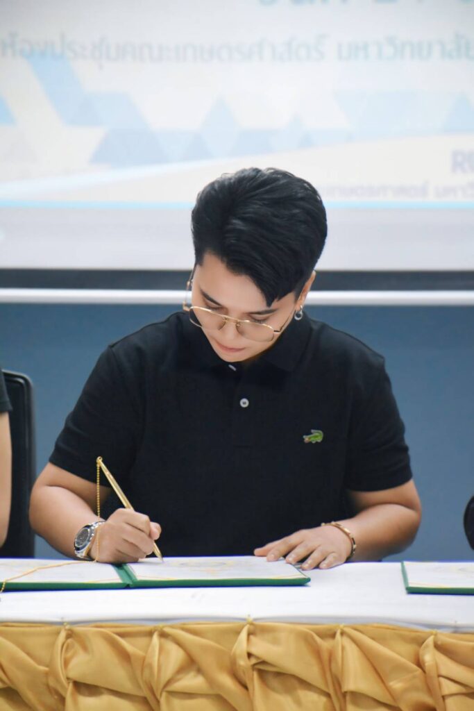 บริษัท มิตรเจริญฟาร์ม จำกัด ลงนามโดย นายมนตรี พลเยี่ยม กรรมการผู้จัดการบริษัท โดยมีวัตถุประสงค์เพื่อส่งเสริมและสนับสนุนการจัดการศึกษาของคณะเกษตรศาสตร์ เกษตรกร กลุ่มเกษตรกร หรือวิสาหกิจชุมชน ศึกษาวิจัยและพัฒนาการสร้างมูลค่าเพิ่มของฟาร์มที่ไม่ได้ใช้ประโยชน์ และพัฒนาบุคลากร นักศึกษา รวมถึงการให้บริการวิชาการด้านการเลี้ยงสัตว์เศรษฐกิจแก่สังคมและชุมชน