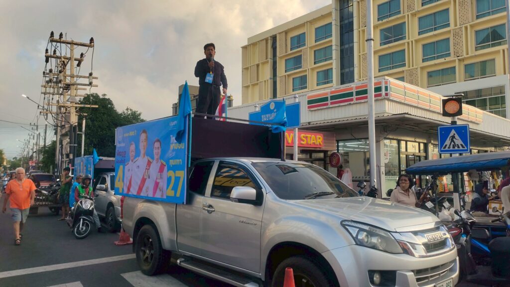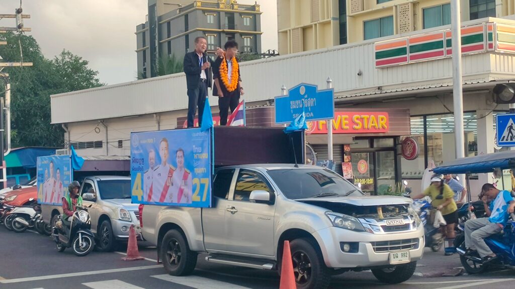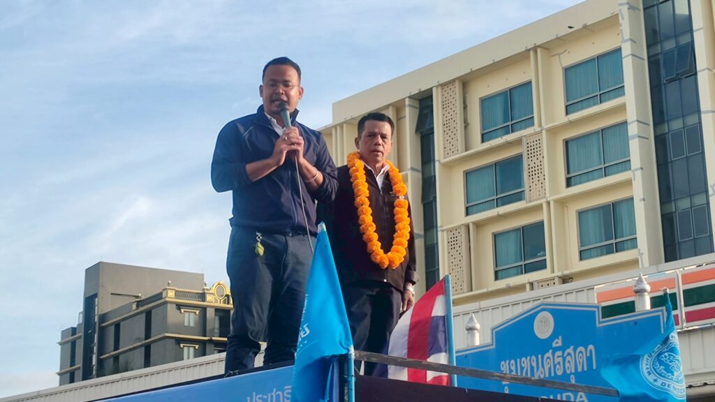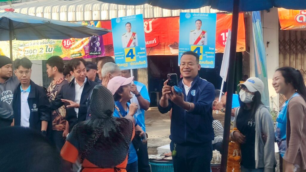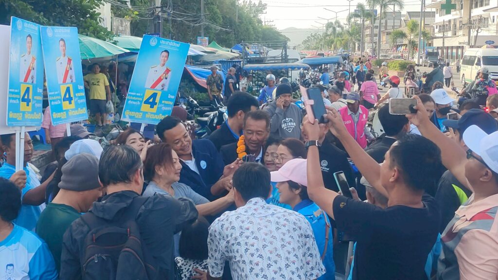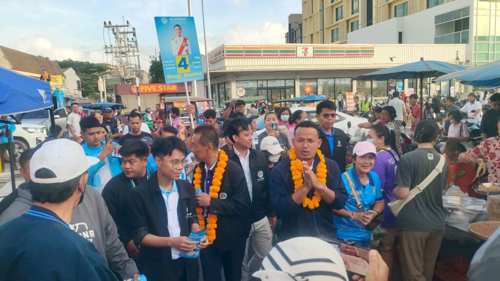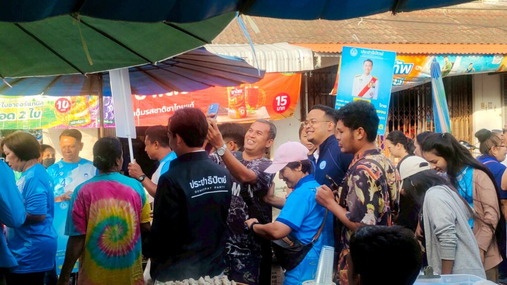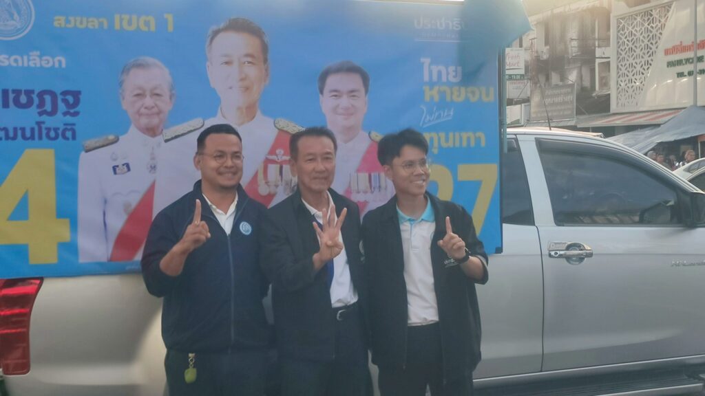 วันนี้ (25 มกราคม 2569) ที่ตลาดนัดวันอาทิตย์ในเขตอำเภอเมือง จังหวัดสงขลา ซึ่งถือเป็นตลาดขนาดใหญ่และมีประชาชนเดินทางมาจับจ่ายจำนวนมาก นายจุรี นุ่มแก้ว รองหัวหน้าพรรคประชาธิปัตย์ พร้อมด้วยแกนนำพรรค อาทิ นายเจือ ราชสีห์ และนายไพเจน มากสุวรรณ์ ลงพื้นที่ช่วยหาเสียงให้นายพิเชฏฐ พัฒนโชติ ผู้สมัคร ส.ส. เขต 1 พรรคประชาธิปัตย์ ในช่วงโค้งสุดท้ายของการเลือกตั้ง