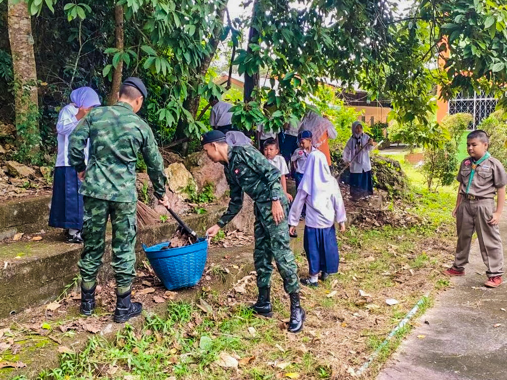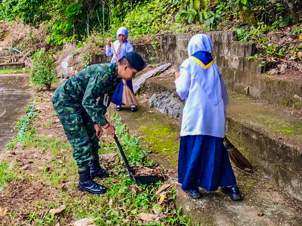 ฉก.พัน.ร.ที่ 1 ร่วมบำเพ็ญสาธารณประโยชน์ สถานที่สำคัญภายในชุมชน บ.กาโสด อ.บันนังสตา จ.ยะลา