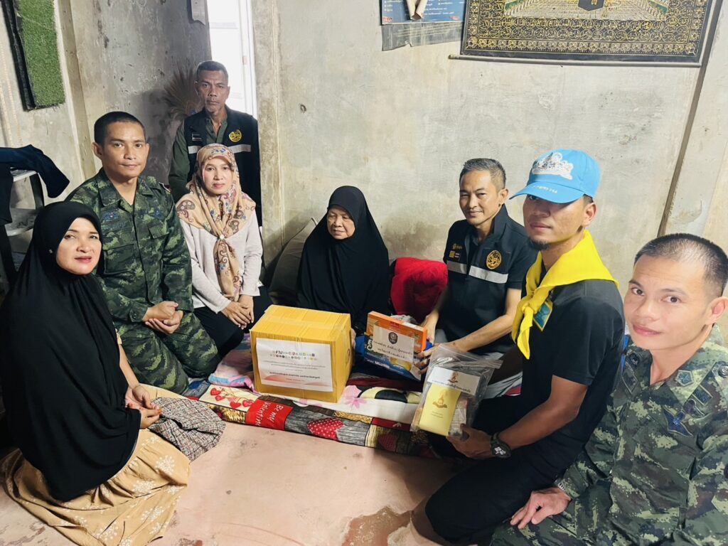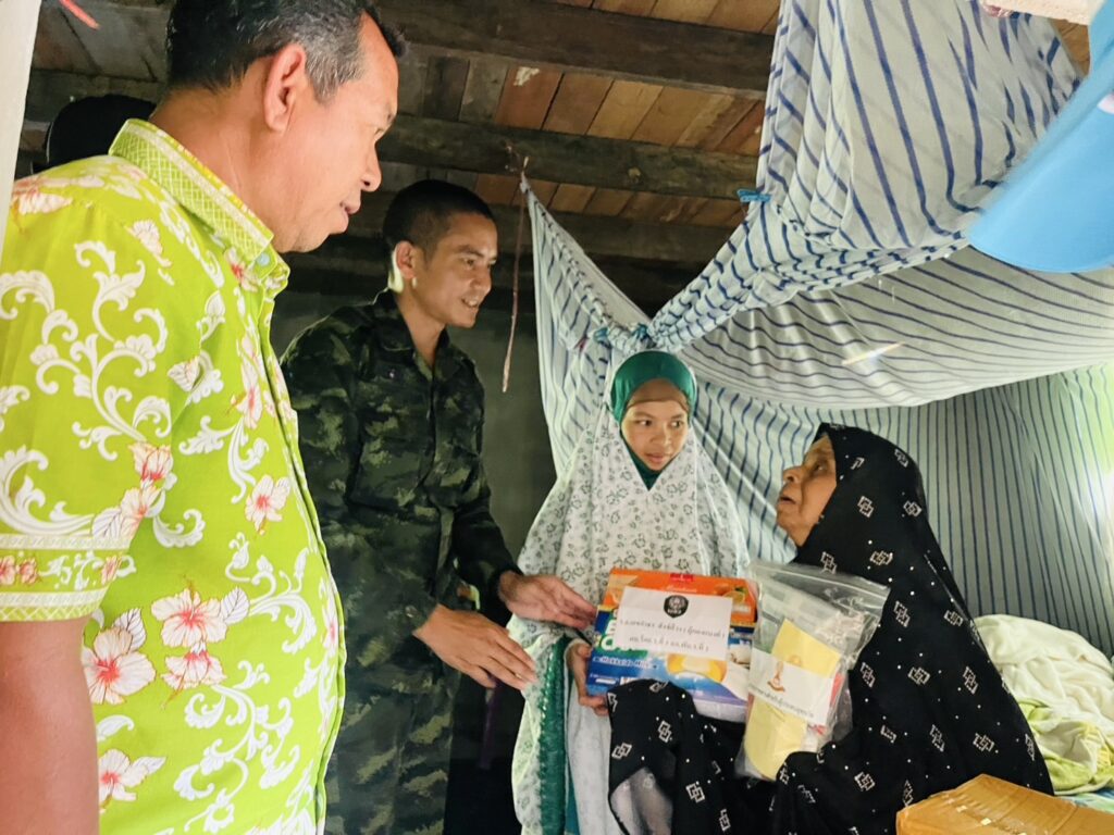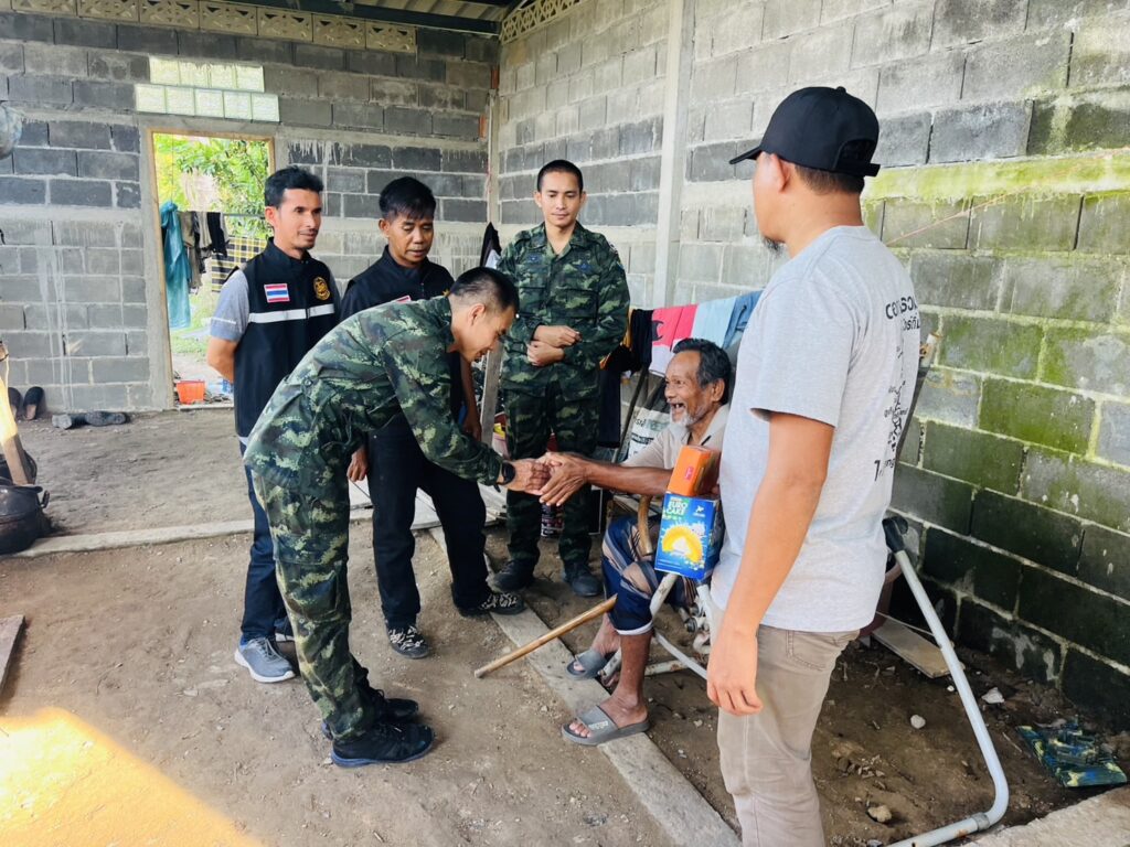 เมื่อวันที่ 29 ธันวาคม 2568 เวลา 13.00 น. กองร้อยทหารราบที่ 3 หน่วยเฉพาะกิจกองพันทหารราบที่ 2 จัดกำลังพล ร่วมกับ ชมรมเยาวชนจิตอาสา มหาวิทยาลัยฟาฎอนี และผู้นำชุมชน ลงพื้นที่เยี่ยมเยียนผู้ป่วยติดเตียงและผู้พิการในพื้นที่ หมู่ที่ 1 , หมู่ที่ 2 , หมู่ที่ 5 และหมู่ที่ 7 ตำบลเขาตูม อำเภอยะรัง จังหวัดปัตตานี โดยได้พบปะพูดคุยกับประชาชน และมอบของใช้จำเป็นให้ผู้ป่วยจำนวน 20 ราย พร้อมรับฟังปัญหาและความต้องการจากผู้ดูแล เพื่อให้ผู้ป่วยได้รับการดูแลอย่างเหมาะสม นอกจากนี้ยังให้ความรู้และคำแนะนำด้านสุขภาพและการดูแลเบื้องต้นแก่ผู้ดูแลอย่างใกล้ชิด
