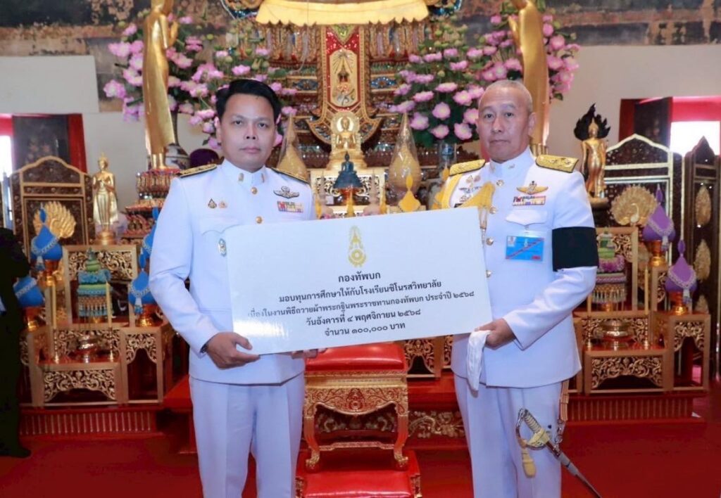 พร้อมกันนี้ ผู้บัญชาการทหารบกได้มอบทุนการศึกษาให้กับโรงเรียนพระปริยัติธรรมฯ และโรงเรียนชิโนรสวิทยาลัย เพื่อส่งเสริมโอกาสทางการศึกษา ทั้งในหลักสูตรการเรียนการสอนภาคปกติ และธรรมศึกษา ให้พระภิกษุและสามเณร รวมถึงเยาวชนในพื้นที่ ก่อนเยี่ยมให้กำลังใจกำลังพลหน่วยขึ้นตรงของกองทัพบก ที่จัดบูธให้บริการประชาชนที่มาร่วมในพิธีตลอดทั้งวันโดยไม่มีค่าใช้จ่าย ประกอบด้วย ชุดแพทย์และชุดทันตกรรมเคลื่อนที่ของกรมแพทย์ทหารบก และช่างตัดผมจิตอาสาของกองทัพภาคที่ 1 ร่วมกับวิทยาลัยสารพัดช่างสี่พระยา ซึ่งถือเป็นการสืบสานงานโครงการจิตอาสาพระราชทานของพระบาทสมเด็จพระเจ้าอยู่หัว เสริมภารกิจด้านความมั่นคง ร่วมดูแลพัฒนาคุณภาพชีวิตให้ประชาชนในพื้นที่ด้วย