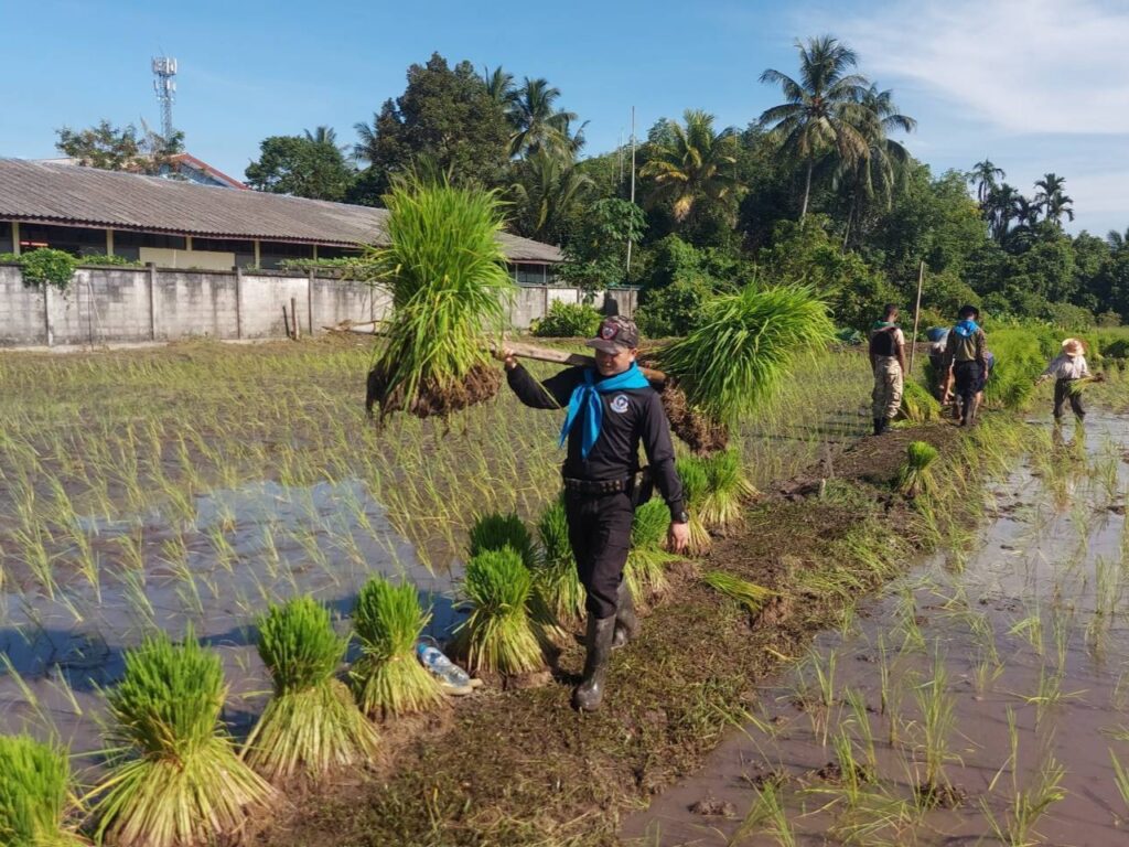วันที่ 3 ตุลาคม 2568 เวลา 08.30 น. หน่วยเฉพาะกิจกรมทหารพรานที่ 41 โดยกองร้อยทหารพรานที่ 4111 นำโดยผู้บังคับกองร้อย พร้อมกำลังพลชุดปฏิบัติการกิจการพลเรือน ร่วมมือกับ หัวหน้าส่วนราชการ ผู้นำท้องที่ ผู้นำท้องถิ่น และประชาชนในพื้นที่ เข้าร่วมกิจกรรม “ลงแขกเกี่ยวข้าว” ภายใต้โครงการ “อารยเกษตร สืบสาน รักษา ต่อยอด” ตามแนวทางพระราชดำริเศรษฐกิจพอเพียงด้วย “โคก หนอง นา แห่งน้ำใจและความหวัง” ณ แปลงนาหลังโรงเรียนบ้านยือโร๊ะ หมู่ที่ 2 ตำบลบาโงย อำเภอรามัน จังหวัดยะลา โดยมี นายจรูญศักดิ์ หมาดเท่ง นายอำเภอรามัน เป็นประธานในพิธี