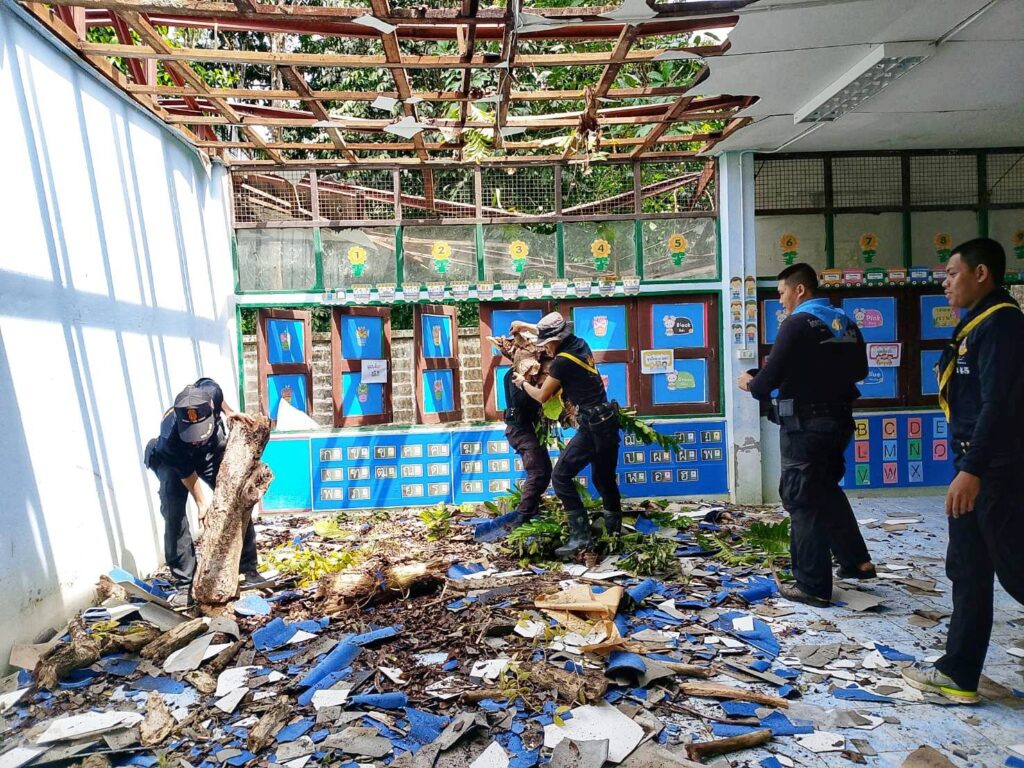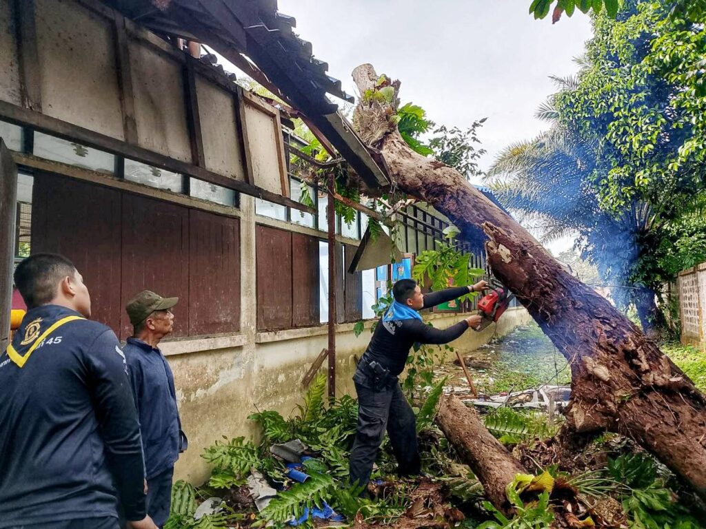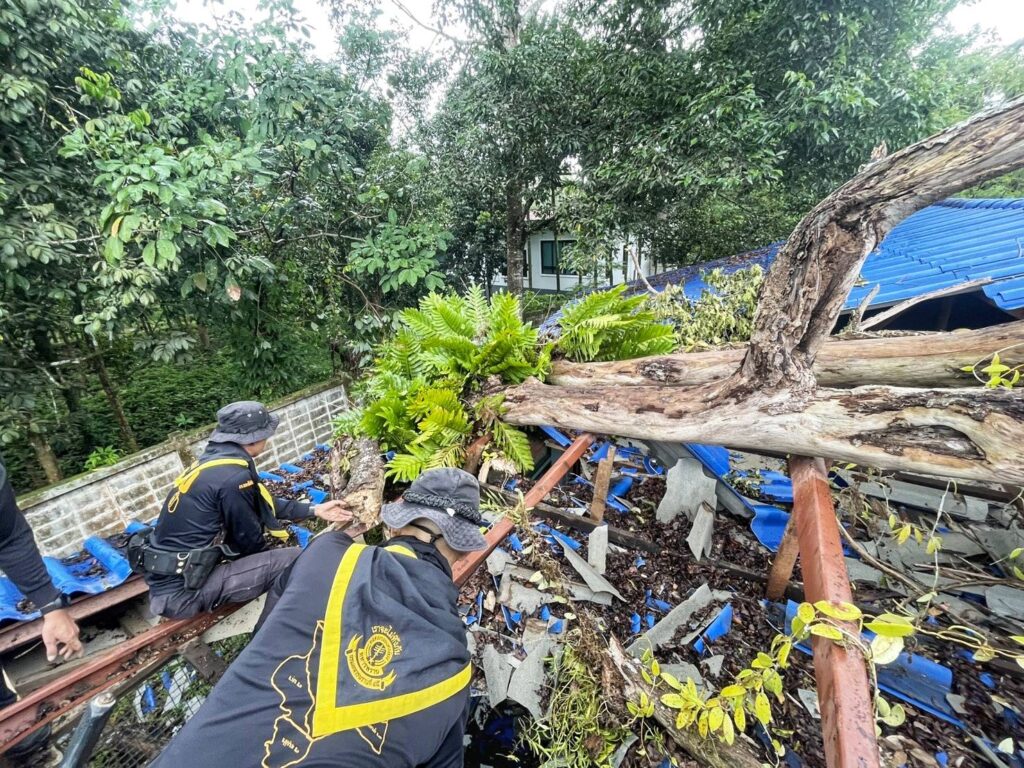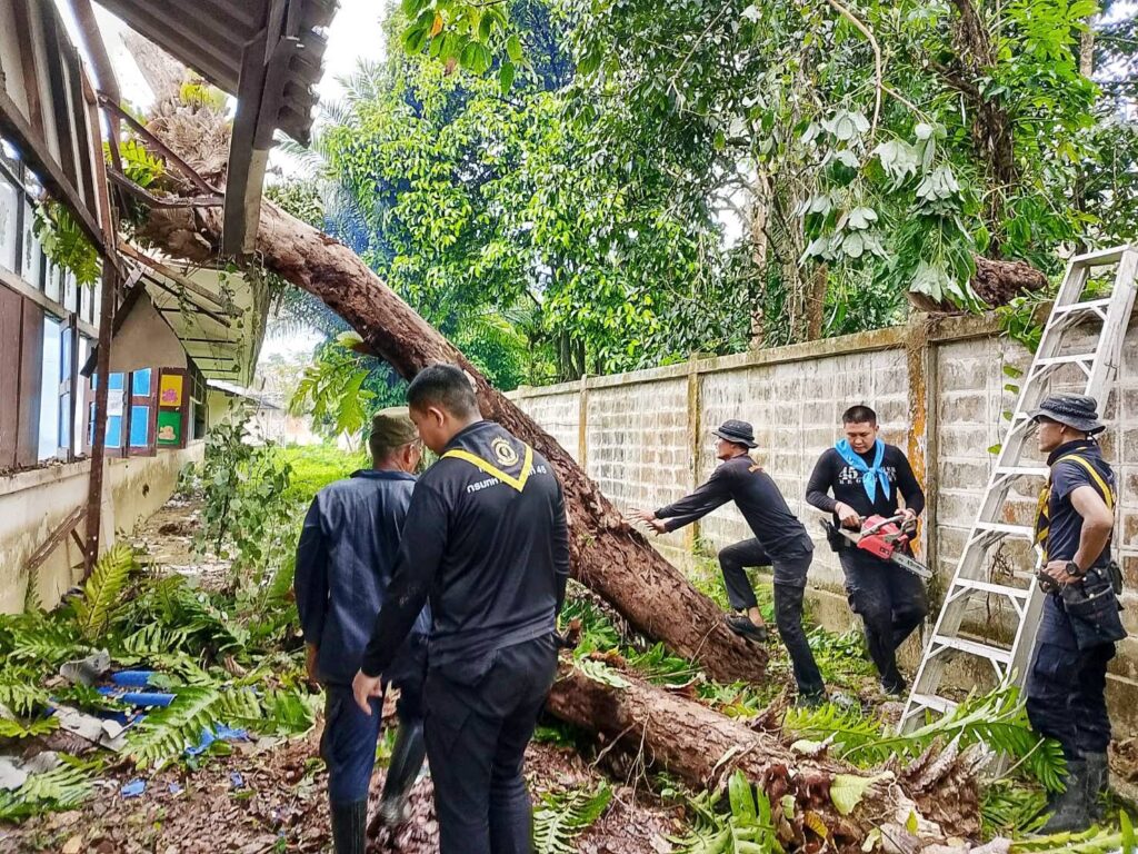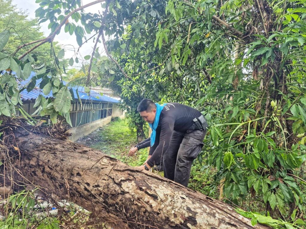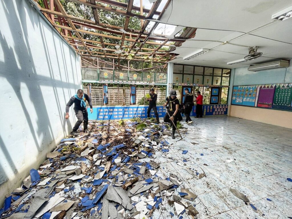 กำลังพลของหน่วยได้ร่วมกันตัดต้นไม้และกิ่งไม้ที่ล้มทับ เคลื่อนย้ายสิ่งของ พร้อมเร่งฟื้นฟูพื้นที่ให้กลับมาใช้งานได้ตามปกติ เพื่อให้นักเรียนสามารถกลับมาเรียนได้อย่างปลอดภัยและมั่นใจอีกครั้ง