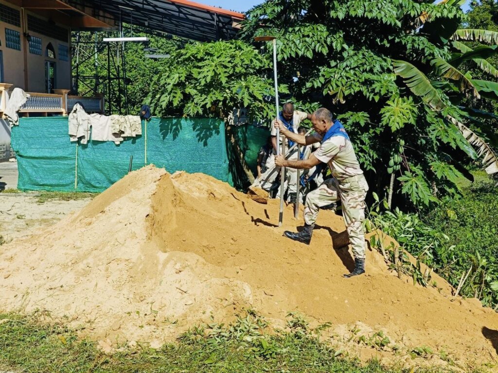 เมื่อวันที่ 4 กันยายน 2568 เวลา 08.00 น. กองร้อยทหารพรานที่ 4901 หน่วยเฉพาะกิจกรมทหารพรานที่ 49 นำโดย จ่าสิบเอก สมศักดิ์ แสงทอง รองผู้บังคับกองร้อยทหารพรานที่ 4901 พร้อมด้วยกำลังพลจิตอาสาของหน่วย ได้ร่วมกับ สมาชิกกองอาสารักษาดินแดนอำเภอศรีสาคร และ ชุดสันติสุขที่ 406 จัดกิจกรรม “จิตอาสาพัฒนา” ทำความสะอาดบริเวณโดยรอบ มัสยิดอัลมุฮซีนีน บ้านกูเล็ง (บ้านย่อยบ้านซากอ) หมู่ที่ 1 ตำบลซากอ อำเภอศรีสาคร จังหวัดนราธิวาส