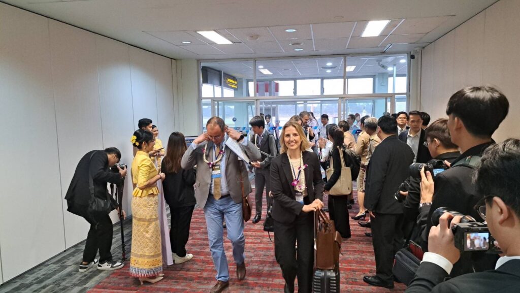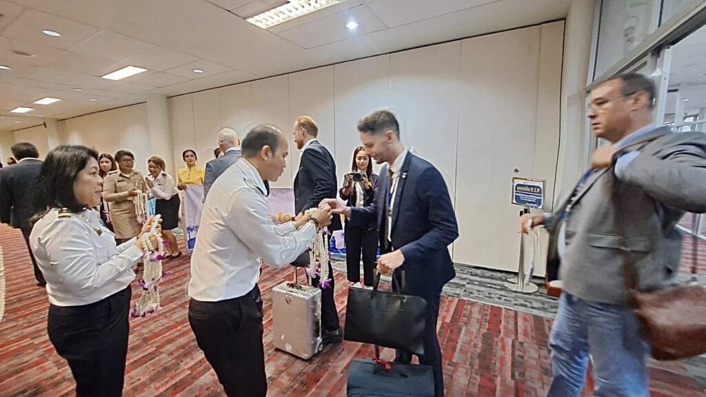 วันที่ 29 กันยายน 2568 เวลา 10.00 น. นางคณิตา ราษฎร์นุ้ย รองผู้ว่าราชการจังหวัดสงขลา เป็นประธานให้การต้อนรับคณะเอกอัครราชทูตจำนวน 22 ประเทศ จากยุโรปและเอเชีย พร้อมคณะสื่อมวลชนต่างชาติ ที่เดินทางมาร่วม โครงการเสริมสร้างความเข้าใจและความร่วมมือกับต่างประเทศ ณ อาคารผู้โดยสาร ท่าอากาศยานหาดใหญ่ โดยมีผู้แทนจากหน่วยงานราชการ การท่องเที่ยวแห่งประเทศไทย (ททท.) สำนักงานหาดใหญ่ สำนักงานการท่องเที่ยวและกีฬาจังหวัดสงขลา และหน่วยงานที่เกี่ยวข้องร่วมต้อนรับ