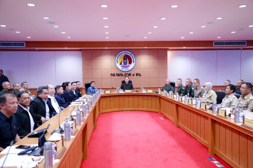 วันนี้ (11 ตุลาคม 2568) เวลา 11.00 น. ที่ห้องประชุม 1 กองอำนวยการรักษาความมั่นคงภายในภาค 4 ส่วนหน้า ค่ายสิรินธร ตำบลเขาตูม อำเภอยะรัง จังหวัดปัตตานี นายอนุทิน ชาญวีรกูล นายกรัฐมนตรี/รัฐมนตรีว่าการกระทรวงมหาดไทย/ผู้อํานวยการรักษาความมั่นคงภายในราชอาณาจักร พร้อมด้วย พลเอก ณัฐพล นาคพาณิชย์ รัฐมนตรีว่าการกระทรวงกลาโหม พลเอก สมศักดิ์ รุ่งสิตา หัวหน้าคณะพูดคุยสันติสุข (คนใหม่) พร้อมด้วย รัฐมนตรีที่เกี่ยวข้องด้านความมั่นคง พลเอก พนา แคล้วปลอดทุกข์ ผู้บัญชาการทหารบก/รองผู้อำนวยการกองอำนวยการรักษาความมั่นคงภายในราชอาณาจักร และคณะ เดินทางลงพื้นที่จังหวัดชายแดนภาคใต้ เพื่อตรวจเยี่ยมและรับฟังบรรยายสรุปสถานการณ์ในพื้นที่ พร้อมทั้งประชุมติดตามการแก้ไขปัญหาจังหวัดชายแดนใต้ และแผนปฏิบัติการปีงบประมาณ พ.ศ. 2569 โดยมี พลโท นรธิป โพยนอก แม่ทัพภาคที่ 4/ผู้อำนวยการรักษาความมั่นคงภายในภาค 4 พร้อมทั้ง หน่วยขึ้นตรงกองอำนวยการรักษาความมั่นคงภายในภาค 4 ส่วนหน้า ตลอดจนส่วนราชการที่เกี่ยวข้อง เข้าร่วมประชุม