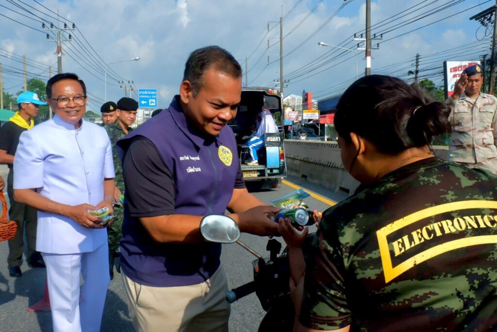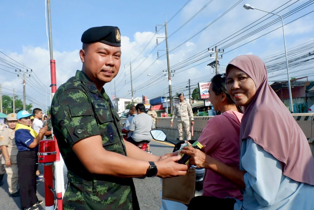 โดยบูรณาการความร่วมมือกับหน่วยงานความมั่นคง ภาคประชาชน จิตอาสา และอาสาสมัคร ส่งเสริมการมีส่วนร่วมของพี่น้องประชาชนในพื้นที่ ร่วมคิด ร่วมวางแผน และร่วมลงมือ ป้องกันและลดอุบัติเหตุ ทางถนน ลดปัจจัยเสี่ยงทั้งด้านคน ยานพาหนะ ถนน และสภาพแวดล้อม พร้อมอำนวยความสะดวกด้านการจราจรแก่พี่น้องประชาชนที่ใช้เส้นทางเพื่อความสะดวกรวดเร็วและปลอดภัยในการเดินทางกลับภูมิลำเนาของตนเองต่อไป