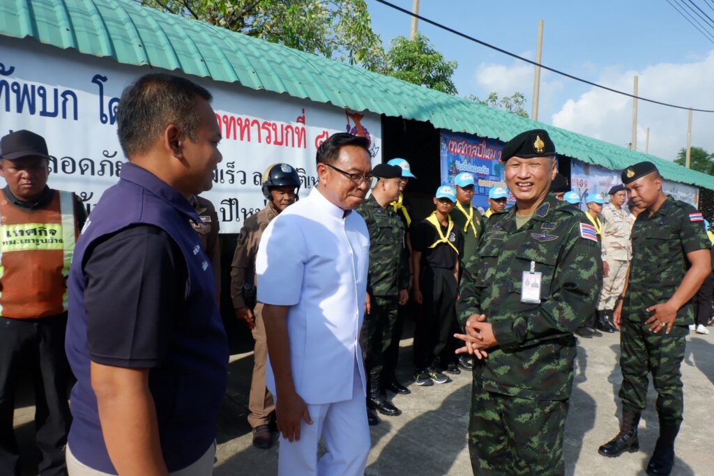 ซึ่งจัดตั้งเพื่ออำนวยความสะดวกให้กับประชาชน ในระหว่างวันที่ 30 ธันวาคม 2568 – 5 มกราคม 2569 ซึ่งจัดตั้งจุดพักรถ และจุดบริการประชาชน พร้อมกำชับให้เพิ่มความเข้มในการตรวจตรารถยนต์ รถจักรยานยนต์ รักษาความปลอดภัย โดยบูรณาการร่วมกันทุกภาคส่วนในการให้บริการแบบครบวงจรเพื่ออำนวยความสะดวกให้แก่พี่น้องประชาชนที่สัญจรไปมาตลอด 24 ชั่วโมง โดยได้มอบสิ่งของอุปโภค บริโภค เพื่อเป็นขวัญและกำลังใจให้กับเจ้าหน้าที่ปฏิบัติงาน และมีความห่วงใยผู้ปฏิบัติหน้าที่ในปฎิบัติหน้าที่ในความรับผิดชอบต่อชีวิตประชาชน ต้องมีการปฏิบัติอย่างเคร่งครัด ไม่ประมาทและมีความปลอดภัย โดยมี พันเอก เฉลิมชัย แดงนุ้ย ผู้บังคับศูนย์ฝึกนักศึกษาวิชาทหาร มณฑลทหารบกที่ 42 พันโท พงษ์พัฒน์ สินไชย ผู้บังคับกองพันทหารปืนใหญ่ที 5 กรมทหารปืนใหญ่ที่ 5 นายกเทศบาลเมืองเขารูปช้าง