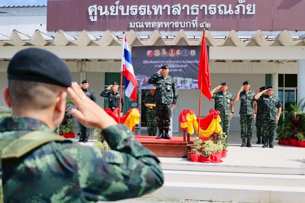 เมื่อวันที่ 23 ธันวาคม 2568 เวลา 1330 น. ที่ ศูนย์บรรเทาสาธารณภัย มณฑลทหารบกที่ 42 ค่ายเสนาณรงค์ ตำบลคอหงส์ อำเภอหาดใหญ่ จังหวัดสงขลา พลตรี ภูมเดชา พ่วงเจริญ ผู้บัญชาการมณฑลทหารบกที่42 เป็นประธานในพิธีปล่อยแถวการรักษาความปลอดภัยค่ายเสนาณรงค์ ในห้วงเทศกาลปีใหม่ 2569 โดยตามที่ ศูนย์ปฏิบัติการ กองทัพบก และ กองทัพภาคที่ 4 ได้มีนโยบายให้ หน่วยทหารทุกหน่วยดำเนินการตาม มาตรการในการรักษาความปลอดภัยสถานที่ โดยเฉพาะค่ายทหารในห้วงเทศกาลวันหยุดให้เป็นไปด้วยความเรียบร้อย และเกิดความปลอดภัยสูงสุดกองข่าว มณทลทหารบกที่ 42 ในฐานะ ฝ่ายข่าวของค่ายเสนาณรงค์ จึงได้ดำเนินการจัดพิธีเปิดการปล่อยแถวการรักษาความปลอดภัยค่ายเสนาณรงค์ในห้วงเทศกาลปีใหม่ขึ้น เพื่อลาดตระเวนตรวจสอบพื้นที่เสี่ยง และจุดล่อแหลมทั้งหมด ภายในค่ายเสนาณรงค์ ตลอดห้วงเทศกาลปีใหม่ โดยมีการจัดกำลังทั้งหมด 6 ชุดปฏิบัติการ ประกอบด้วย 1.ชุดปฏิบัติการร้อยทหารสารวัตร มณฑลทหารบกที่ 42 ,2. ชุดปฏิบัติการแพทย์เคลื่อนที่ โรงพยาบาลค่ายเสนาณรงค์ ,3. ชุดปฏิบัติการรถดับเพลิง มณฑลทหารบกที่ 42 ,4. ชุดปฏิบัติการลาดตระเวน กองพันมณฑลทหารบกที่ 42 ,5. ชุดปฏิบัติการลาดตระเวน กรมทหารราบที่ 5 และ 6. ชุดปฏิบัติการลาดตระเวน กองพันทหารราบที่ 1 กรมทหารราบที่ 5 รวมทั้งสิ้น 58 นาย