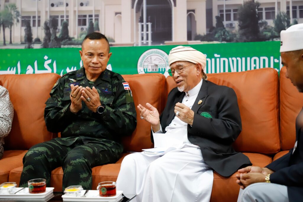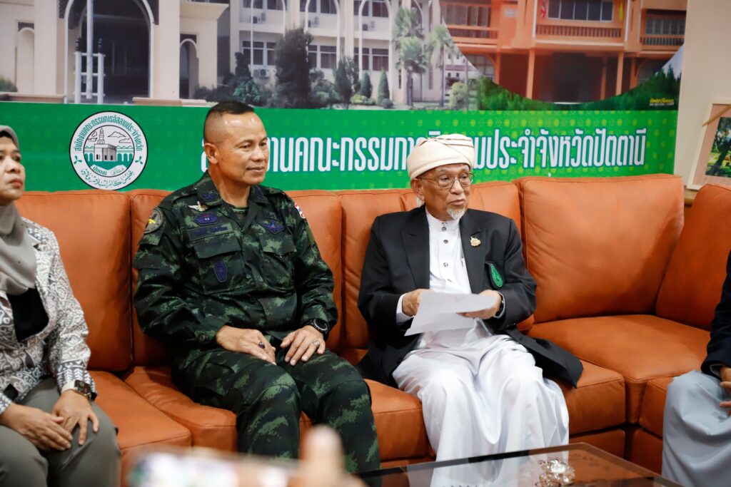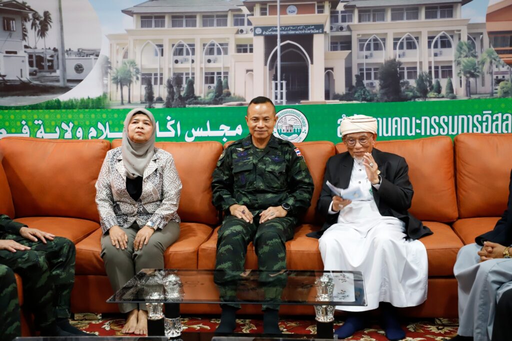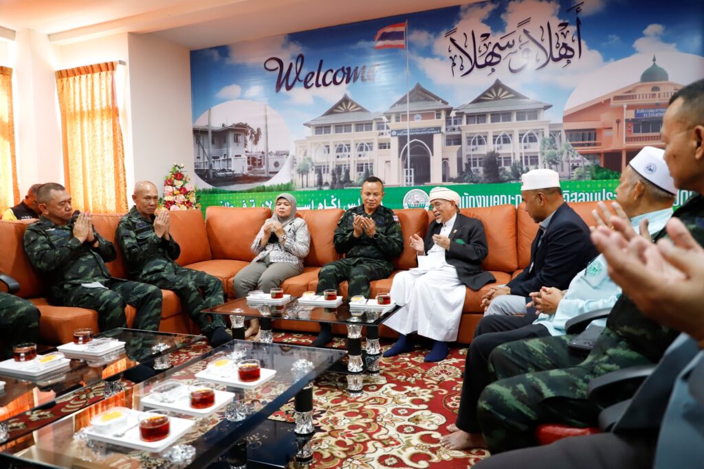 วันที่ 5 ตุลาคม 2568 เวลา 14.10 น. ที่สำนักงานคณะกรรมการอิสลามประจำจังหวัดปัตตานี อำเภอหนองจิก จังหวัดปัตตานี พลโท นรธิป โพยนอก แม่ทัพภาคที่ 4 / ผู้อำนวยการรักษาความมั่นคงภายในภาค 4 พร้อมคณะผู้บังคับบัญชา ได้เดินทางเข้าพบ ดร.แวดือราแม มะมิงจิ ประธานผู้ทรงคุณวุฒิจุฬาราชมนตรี, ประธานกรรมการอิสลามประจำจังหวัดนราธิวาส, คณะกรรมการอิสลามประจำจังหวัดปัตตานี, นางพาตีเมาะ สะดียามู ผู้ว่าราชการจังหวัดปัตตานี และผู้นำศาสนา เพื่อร่วมพบปะพูดคุยและแลกเปลี่ยนความคิดเห็น