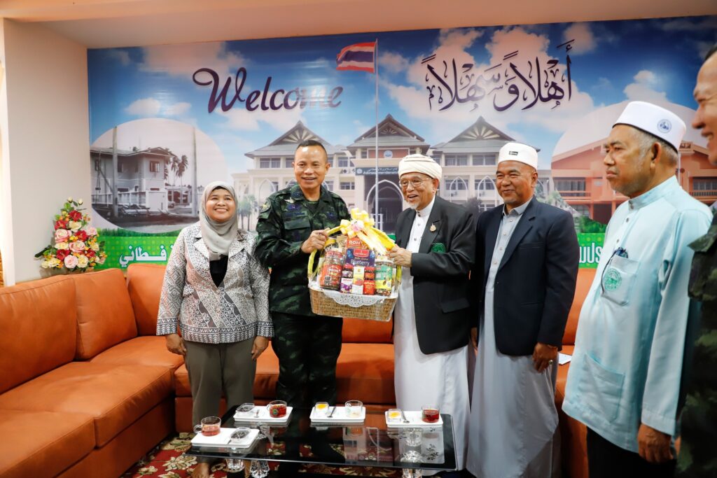 จากนั้น แม่ทัพภาคที่ 4 ได้มอบกระเช้าของที่ระลึกให้กับ ดร.แวดือราแม มะมิงจิ เพื่อแสดงความเคารพและสร้างความสัมพันธ์อันดีระหว่างกองทัพภาคที่ 4 และผู้นำศาสนาในพื้นที่