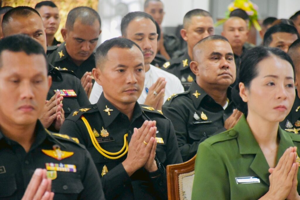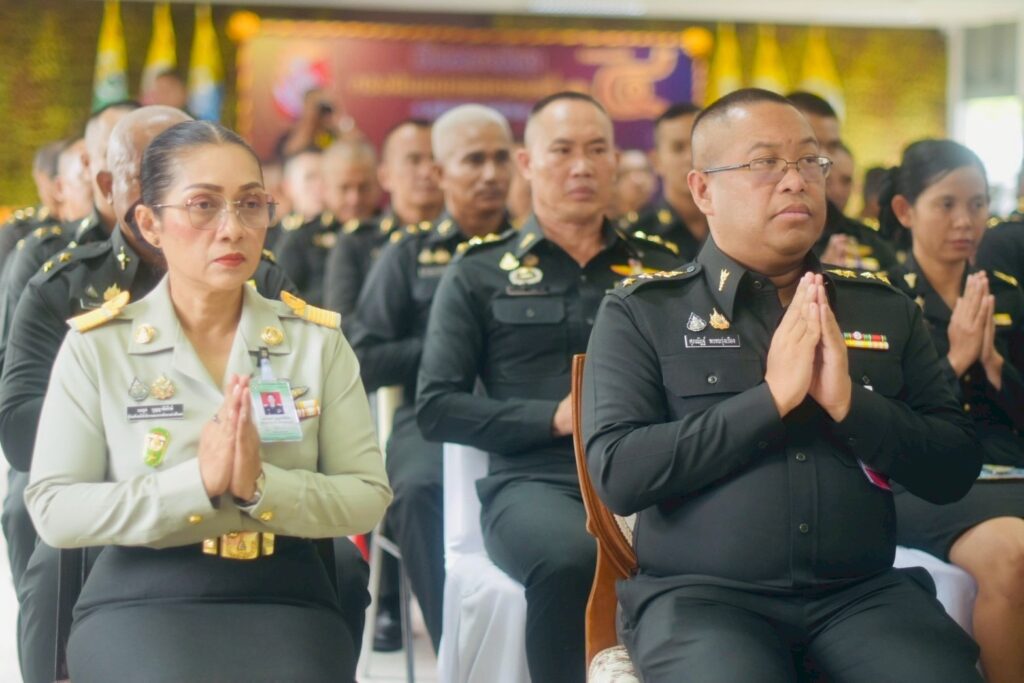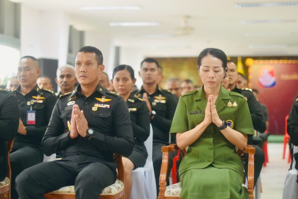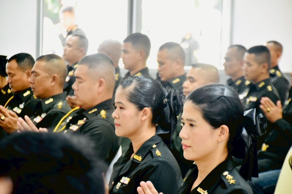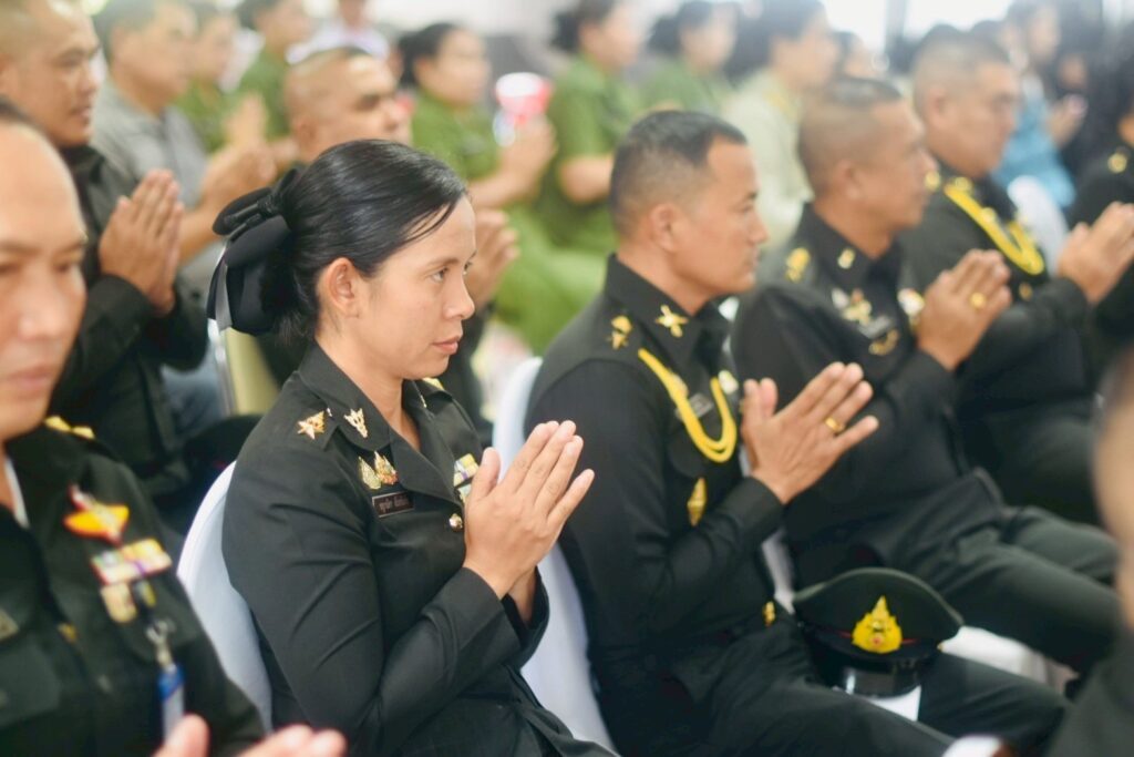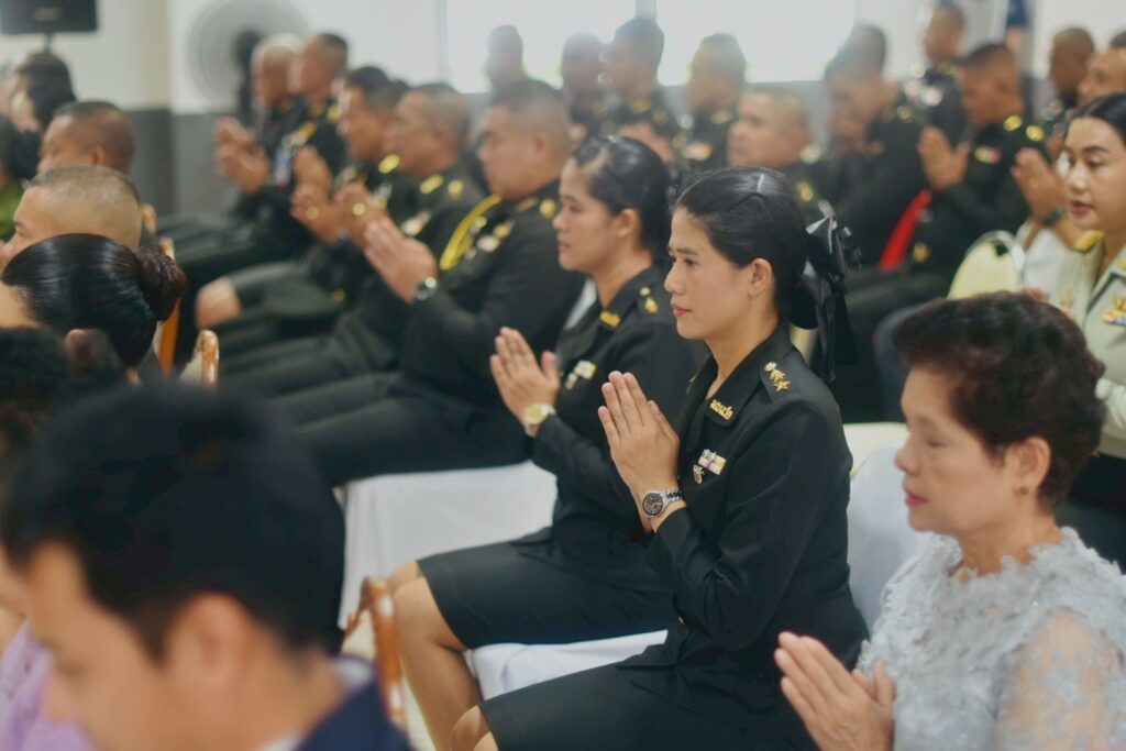 คณะผู้บังคับบัญชา หัวหน้าส่วนราชการ และกำลังพลเข้าร่วมพิธีอย่างพร้อมเพรียงกัน