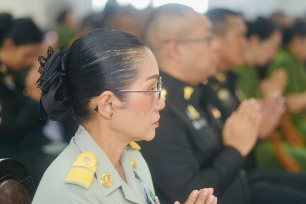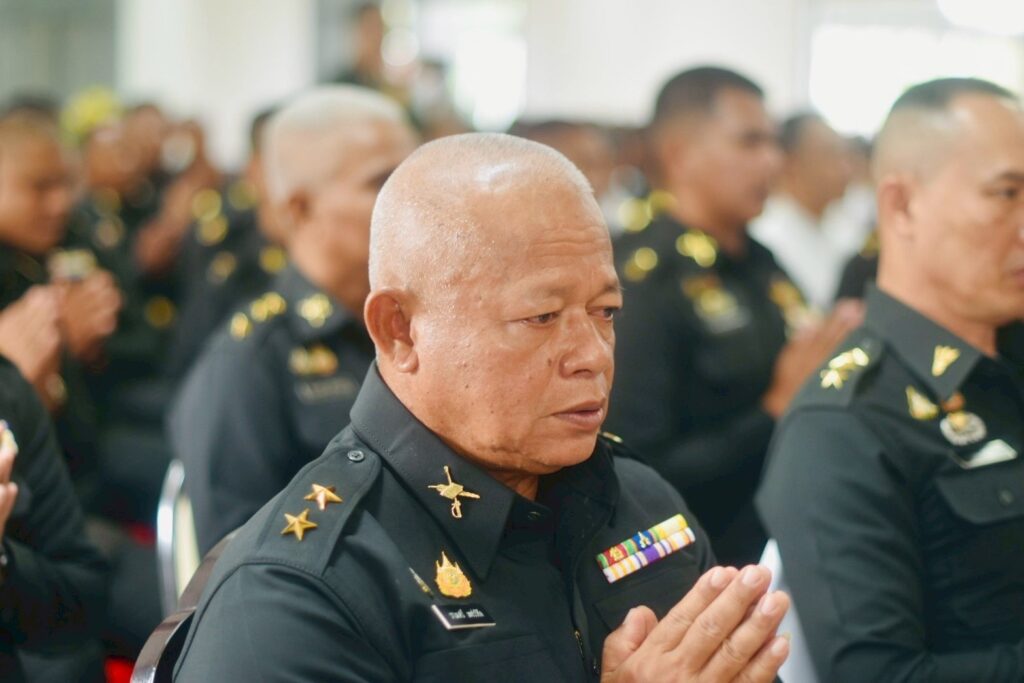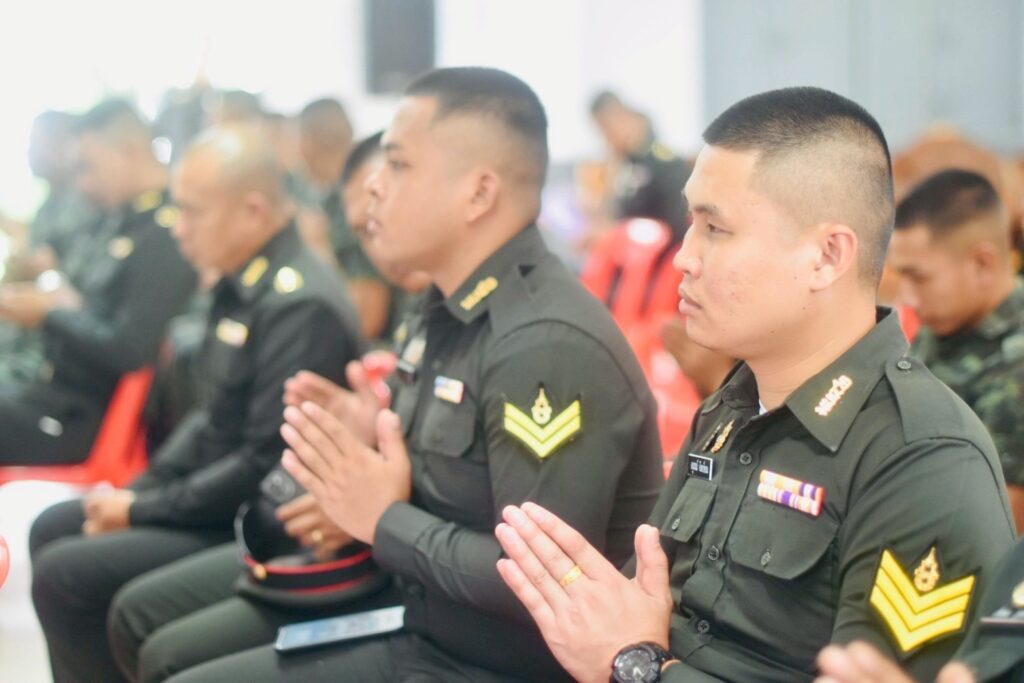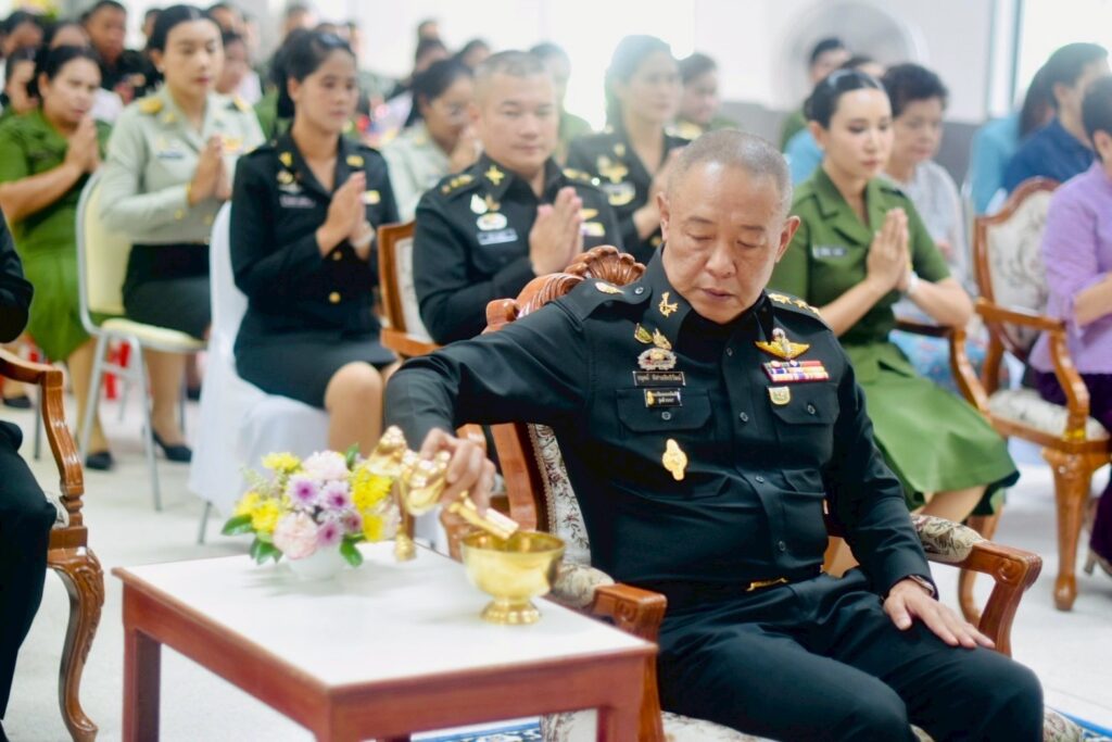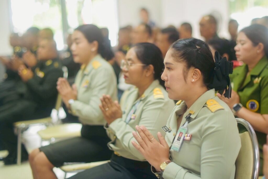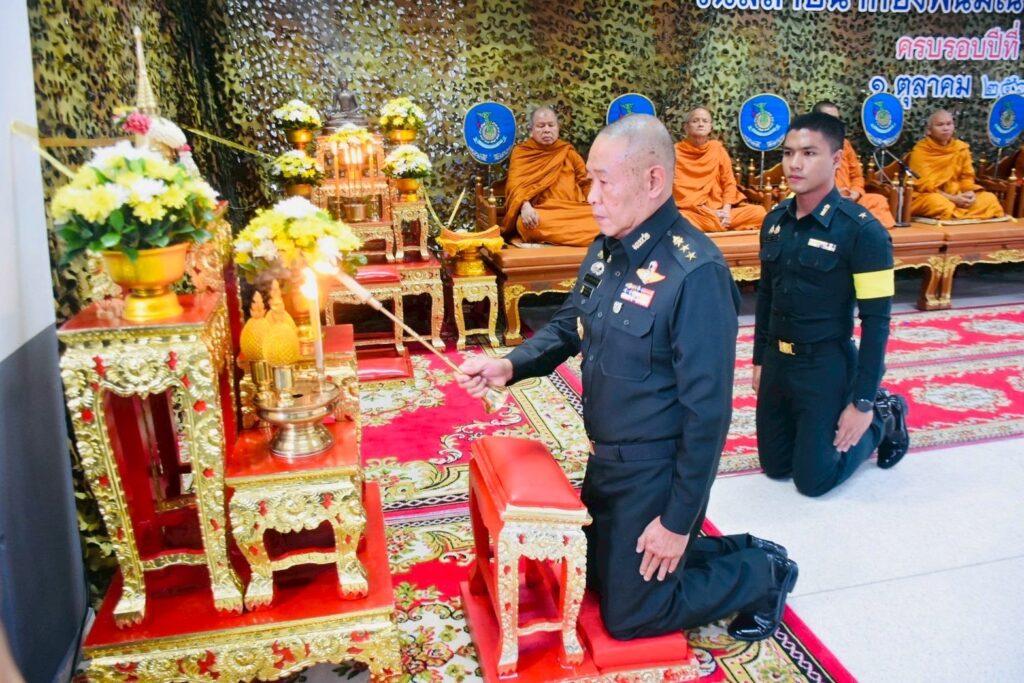 คณะผู้บังคับบัญชา หัวหน้าส่วนราชการ และกำลังพลเข้าร่วมพิธีอย่างพร้อมเพรียงกัน
