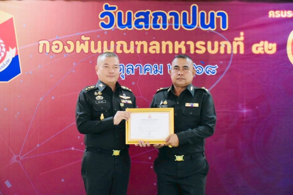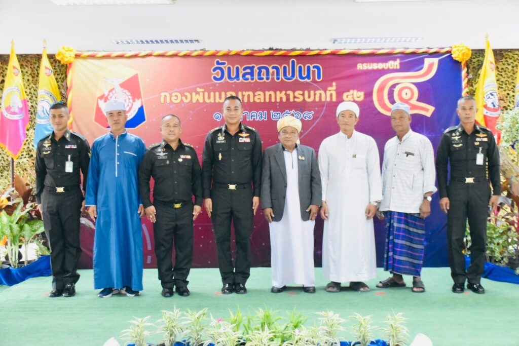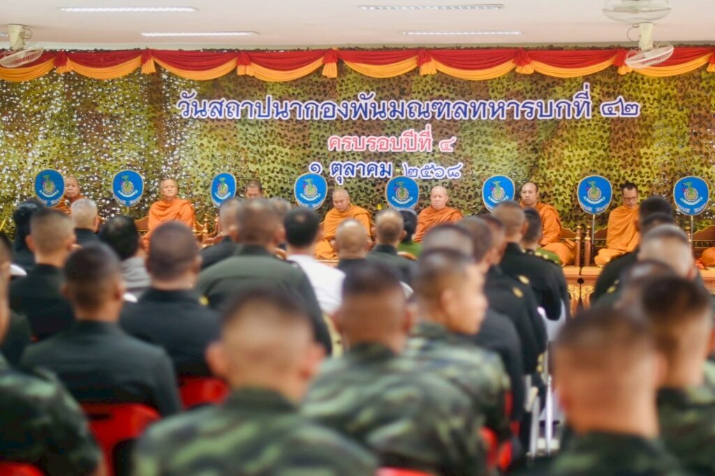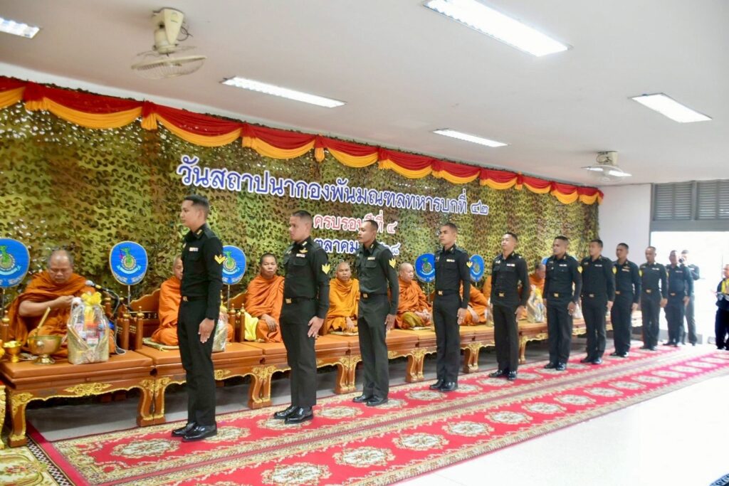 เมื่อวันที่ 1 ตุลาคม 2568 เวลา 1030 น. ที่กองพันมณฑลทหารบกที่ 42 ค่ายเสนาณรงค์ อำเภอหาดใหญ่ จังหวัดสงขลา พันเอก ธนุตม์ พิศาลสิทธิวัฒน์ รองผู้บัญชาการมณฑลทหารบกที่ 42 / รองผู้อำนวยการรักษาความมั่นคงภายในจังหวัดสงขลา ส่วนหน้า (ฝ่ายทหาร) เป็นผู้แทน พลตรี ภูมเดชา พ่วงเจริญ เป็นผู้บัญชาการมณฑลทหารบกที่ 42 เป็นประธานเดินทางมาเป็นประธานในพิธีทางศาสนา เนื่องในวันคล้ายวันสถาปนาหน่วย กองพันมณฑลทหารบกที่ 42 ครบรอบปีที่ 4 เพื่อรำลึกถึงเกียรติประวัติ และคุณงามความดีของหน่วย อุทิศบุญกุศลให้แก่กำลังพลที่เสียชีวิตจากการปฏิบัติหน้าที่ทั้งในภาคสนาม และที่ตั้งปกติ ตลอดจนพิธีบวงสรวงสิ่งศักดิ์สิทธิ์ภายในค่ายเสนาณรงค์ พิธีวางพวงมาลา พลเอก หลวงเสนาณรงค์เพื่อความเป็นสิริมงคล และสร้างขวัญกำลังใจแก่กำลังพล พร้อมทั้งมอบเกียติบัตรให้แก่กำลังพลเกษียณอายุราชการ และมอบทุนการศึกษาแก่บุตรของกำลังพลเพื่อเป็นขวัญ และกำลังใจอีกด้วย โดยมี พันเอก ทวีพร คณะทอง ผู้บังคับการกรมทหารราบที่ 5 คุณบงกช กาญจนแก้ว ประธานคณะกรรมการศูนย์วิทยุเครื่องแดงเพื่อความมั่นคง คุณ ภัทร์ทิยา ทองคำ ประธานสมาคมแม่บ้านทหารบก สาขากองพันมณฑลทหารบกที่ 42