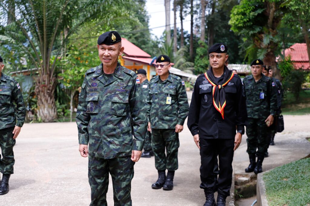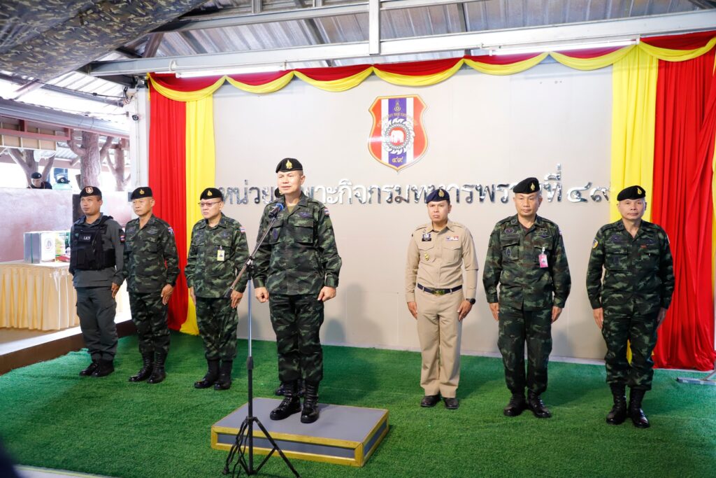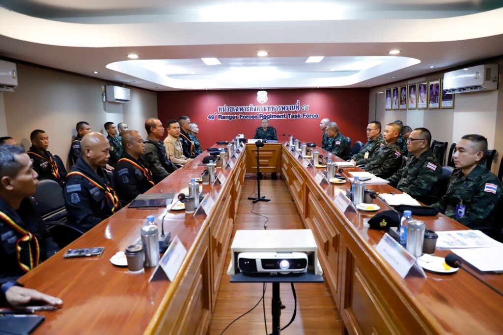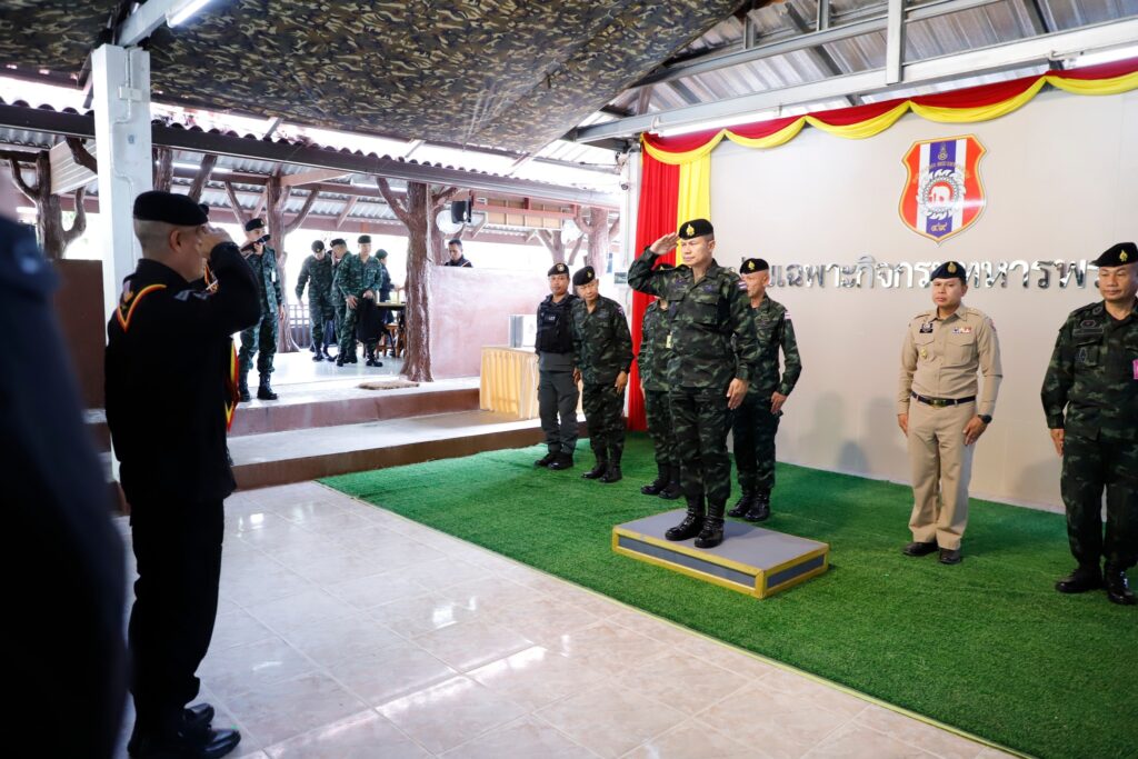 วันนี้ (8 พฤศจิกายน 2568) เวลา 11.00 น. พลโท นรธิป โพยนอก แม่ทัพภาคที่ 4 / ผู้อำนวยการรักษาความมั่นคงภายในภาค 4 พร้อมด้วย พลตรี กรกฎ ภู่โชติ รองแม่ทัพภาคที่ 4 / ผู้อำนวยการรักษาความมั่นคงภายในภาค 4 ส่วนหน้า และคณะฯ ลงพื้นที่ตรวจเยี่ยมการปฏิบัติงานของเจ้าหน้าที่ทหารพราน หน่วยเฉพาะกิจกรมทหารพรานที่ 49 ในพื้นที่ตำบลซากอ อำเภอศรีสาคร จังหวัดนราธิวาส เพื่อร่วมประชุมและรับฟังชี้แจงการปฏิบัติงานที่สำคัญ พร้อมรับฟังปัญหาข้อขัดข้อง รวมทั้งมอบแนวทางการปฏิบัติงานให้เป็นไปในทิศทางเดียวกัน โดยมี พันเอก ณัฏฐพล สุนทรนนท์ ผู้บังคับหน่วยเฉพาะกิจกรมทหารพรานที่ 49 พร้อมด้วยผู้บังคับกองร้อยฯ และกำลังพลร่วมให้การต้อนรับและร่วมการประชุม