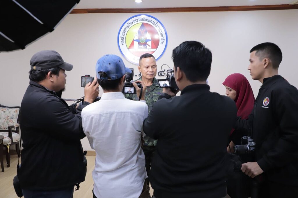 วันที่ 17 พฤศจิกายน 2568 เวลา 14.00 น. พลโท นรธิป โพยนอก แม่ทัพภาคที่ 4/ผู้อำนวยการรักษาความมั่นคงภายในภาค 4 พร้อมด้วยคณะผู้บังคับบัญชา ให้การต้อนรับและให้สัมภาษณ์ ผู้สื่อข่าว สำนักข่าวสปริงนิวส์ พร้อมทีมงาน ในประเด็นการขับเคลื่อนงานการแก้ไขปัญหาจังหวัดชายแดนภาคใต้ ของหน่วยงานความมั่นคง ณ ห้องรับรอง กองอำนวยการรักษาความมั่นคงภายในภาค 4 ส่วนหน้า ค่ายสิรินธร ตำบลเขาตูม อำเภอยะรัง จังหวัดปัตตานี เพื่อสร้างการรับรู้และสร้างความเข้าใจที่ถูกต้องสู่สาธารณชน
