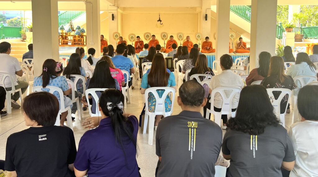 วันที่ 29 เมษายน 2569 ผศ.พิเชษฐ์ จันทวี อธิการบดีมหาวิทยาลัยราชภัฏสงขลา (มรภ.สงขลา) พร้อมด้วยคณะผู้บริหาร คณาจารย์ เจ้าหน้าที่ และอดีตอาจารย์ มรภ.สงขลา ร่วมกิจกรรมทำบุญตักบาตรพระสงฆ์ 10 รูป ถวายพระราชกุศลเนื่องในโอกาสวันคล้ายวันประสูติ สมเด็จพระเจ้าลูกยาเธอ เจ้าฟ้าทีปังกรรัศมีโชติ มหาวชิโรตตมางกูร สิริวิบูลยราชกุมาร ณ สำนักศิลปะและวัฒนธรรม มรภ.สงขลา