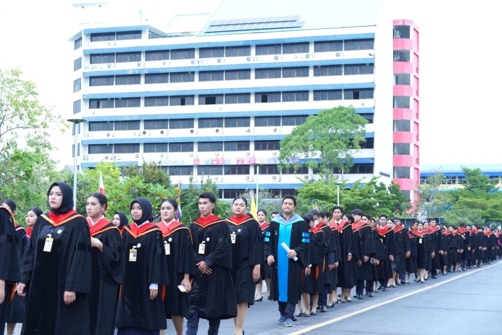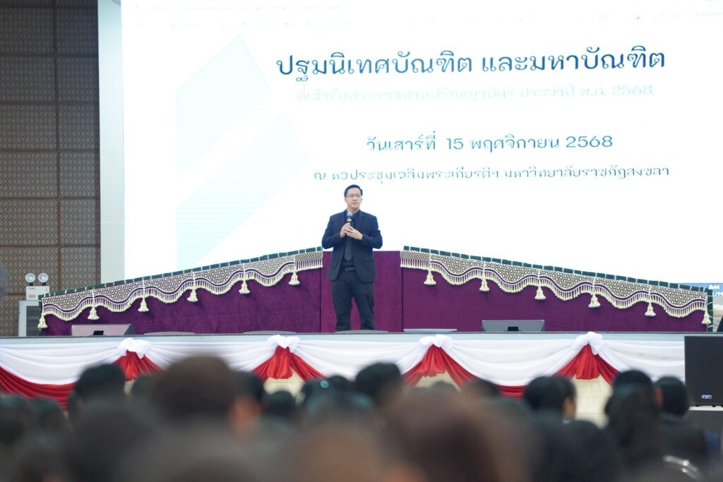 เมื่อวันที่ 15-16 พฤศจิกายน 2568 มหาวิทยาลัยราชภัฏสงขลา (มรภ.สงขลา) จัดพิธีฝึกซ้อมรับพระราชทานปริญญาบัตร ประจำปี พ.ศ. 2568 ณ หอประชุมเฉลิมพระเกียรติฯ และพื้นที่ภายในมหาวิทยาลัย โดยมี ผศ.พิเชษฐ์ จันทวี อธิการบดี มรภ.สงขลา และ ผศ.ธนัย ตันวานิช รองอธิการบดีฝ่ายพัฒนานักศึกษา กล่าวต้อนรับ และแสดงความยินดีกับบัณฑิต ชี้แจงขั้นตอนพิธีพระราชทานปริญญาบัตร โดย นางจารุวรรณ เพชรรักษ์ หัวหน้าสำนักงานผู้อำนวยการสำนักวิทยบริการและเทคโนโลยีสารสนเทศ