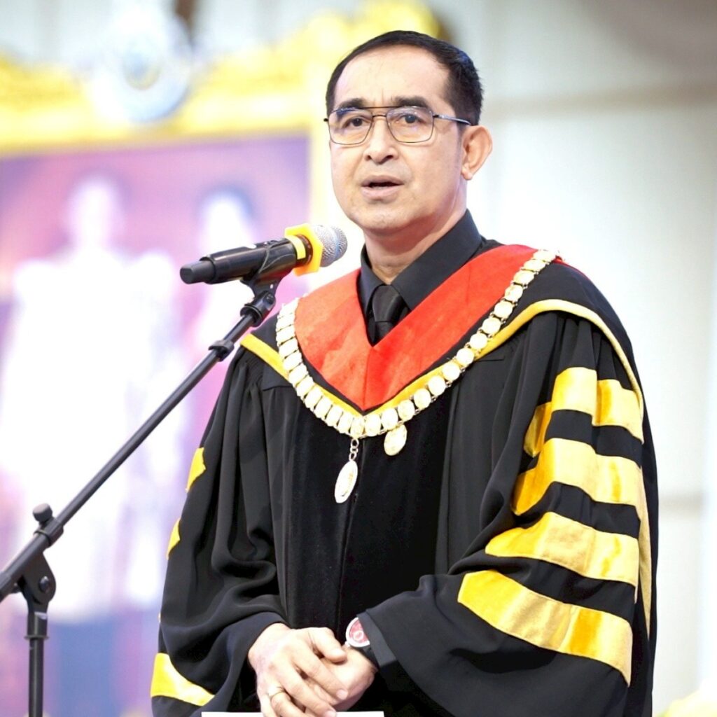ผศ.พิเชษฐ์ จันทวี กล่าวว่า ขอแสดงความยินดีกับบัณฑิตและมหาบัณฑิตทุกคน ในโอกาสเข้ารับพระราชทานปริญญาบัตรประจำปีการศึกษา 2566 ความสำเร็จในวันนี้เป็นผลมาจากความมุ่งมั่น อดทน และความเพียรพยายาม ขอให้บัณฑิตนำความรู้ความสามารถ ไปใช้ในการดำเนินชีวิตและประกอบอาชีพด้วยความซื่อสัตย์สุจริต เพื่อประโยชน์ต่อตนเอง สังคม และประเทศชาติ รวมถึงช่วยกันพัฒนาชุมชนท้องถิ่นของตนอย่างเต็มกำลังความสามารถ ให้สมกับคำที่ว่า คนของพระราชา ข้าของแผ่นดิน