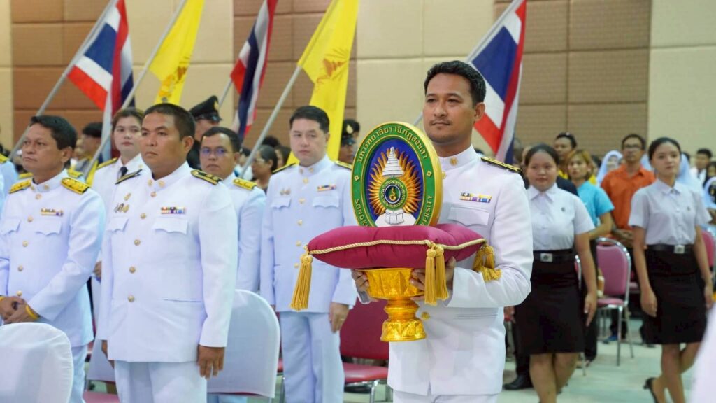 มรภ.สงขลา จัดพิธีรับสนองพระบรมราชโองการโปรดเกล้าโปรดกระหม่อมแต่งตั้ง ผศ.พิเชษฐ์ จันทวี ให้ดำรงตำแหน่งอธิการบดี