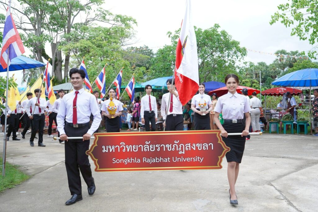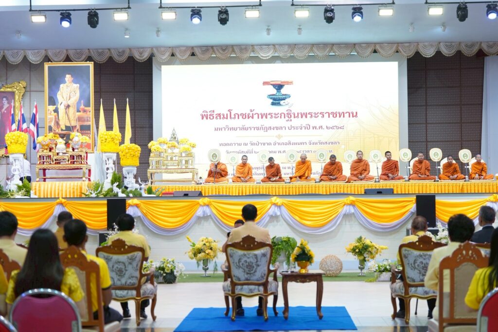 ทั้งนี้ มรภ.สงขลา ได้ร่วมกับหน่วยงานที่เกี่ยวข้องและพุทธศาสนิกชน จัดพิธีอัญเชิญผ้าพระกฐินพระราชทานทางน้ำ โดยขบวนเรืออัญเชิญผ้าพระกฐินพระราชทาน พร้อมขบวนเรือผู้มีจิตศรัทธา เคลื่อนออกจากท่าเรือศูนย์ฟื้นฟูสมรรถภาพคนงานภาค 5 เดินทางเข้าเทียบท่า ณ วัดป่าขาด เพื่อทำพิธีถวายผ้าพระกฐินพระราชทาน ประจำปี พ.ศ. 2568 โดยมีหน่วยงานภาครัฐ เอกชน และประชาชนทั่วไป เข้าร่วมพิธีถวายผ้าพระกฐินพระราชทานเป็นจำนวนมาก ซึ่งก่อนหน้านี้เมื่อวันที่ 22 ตุลาคม 2568 ทางมหาวิทยาลัยได้จัดพิธีสมโภชผ้าพระกฐินพระราชทาน ณ หอประชุมเฉลิมพระเกียรติฯ มรภ.สงขลา