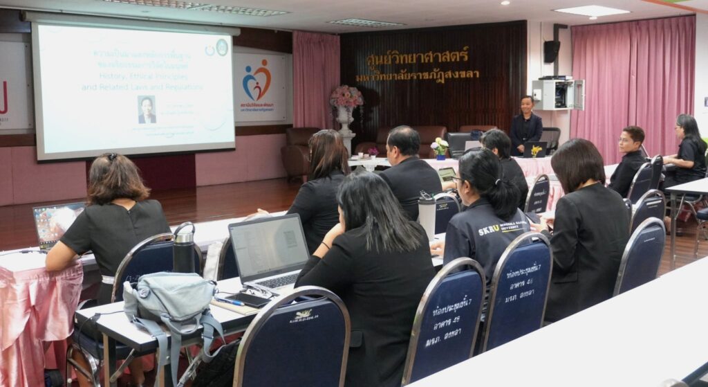 สถาบันวิจัยและพัฒนา มรภ.สงขลา จัดอบรมจริยธรรมการวิจัยในมนุษย์ เทียบเชิญวิทยากรถ่ายทอดเทคนิคเสนอโครงการวิจัยเพื่อขอรับการพิจารณารับรองจริยธรรมการวิจัย พร้อมฝึกปฏิบัติกำหนดประเด็นจริยธรรมการวิจัยทางสังคมศาสตร์ พฤติกรรมศาสตร์ และการวิจัยชุมชน