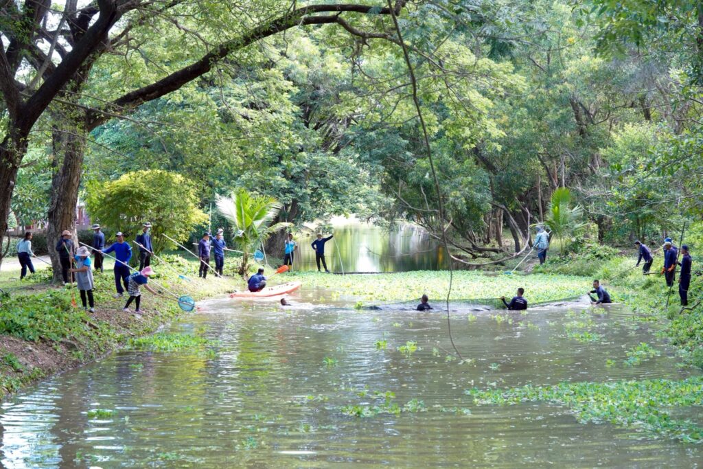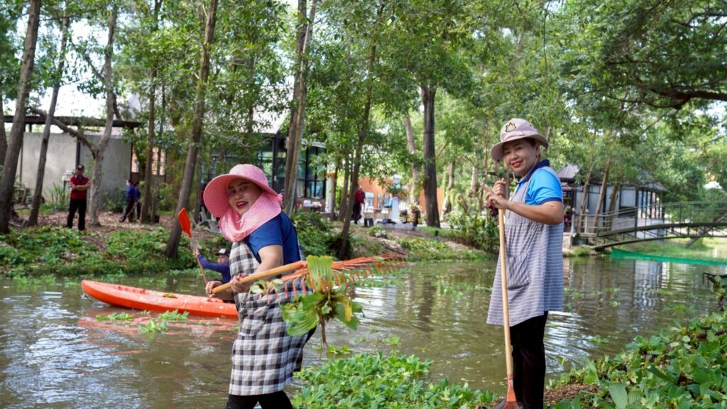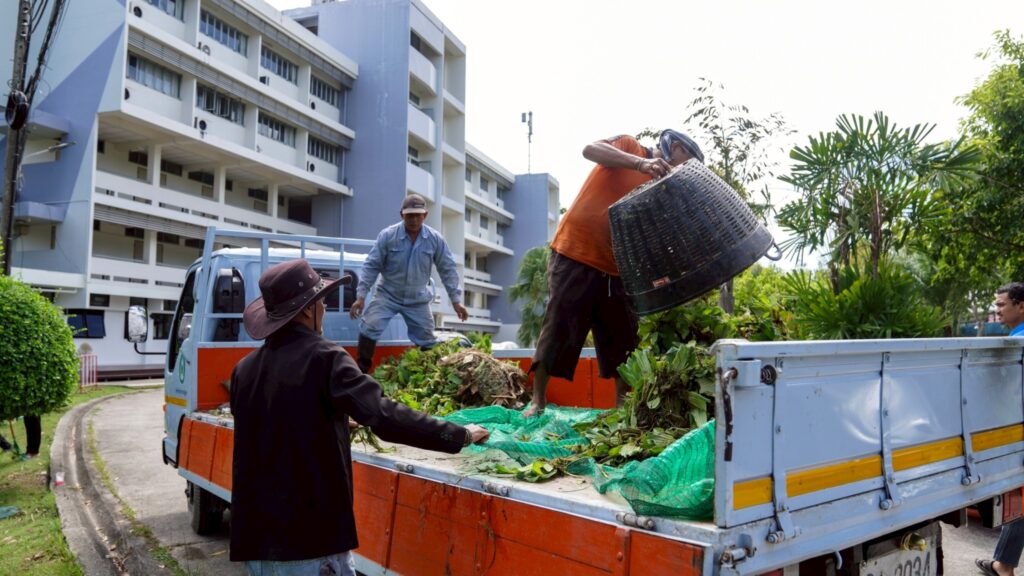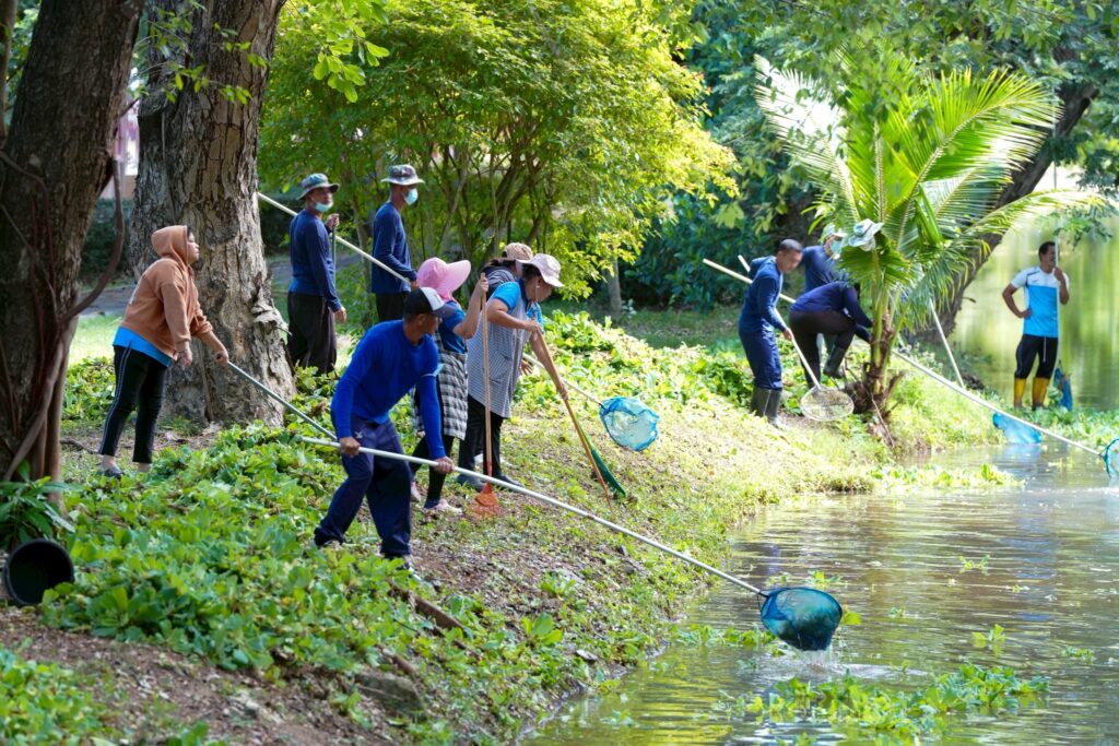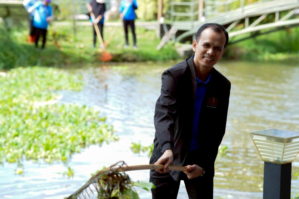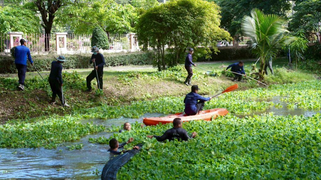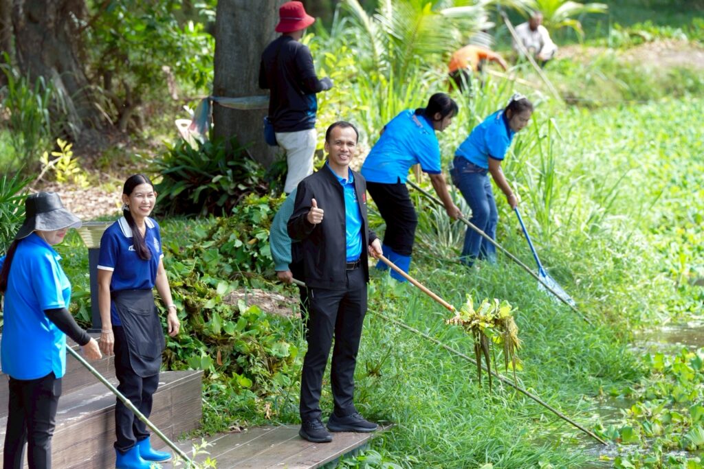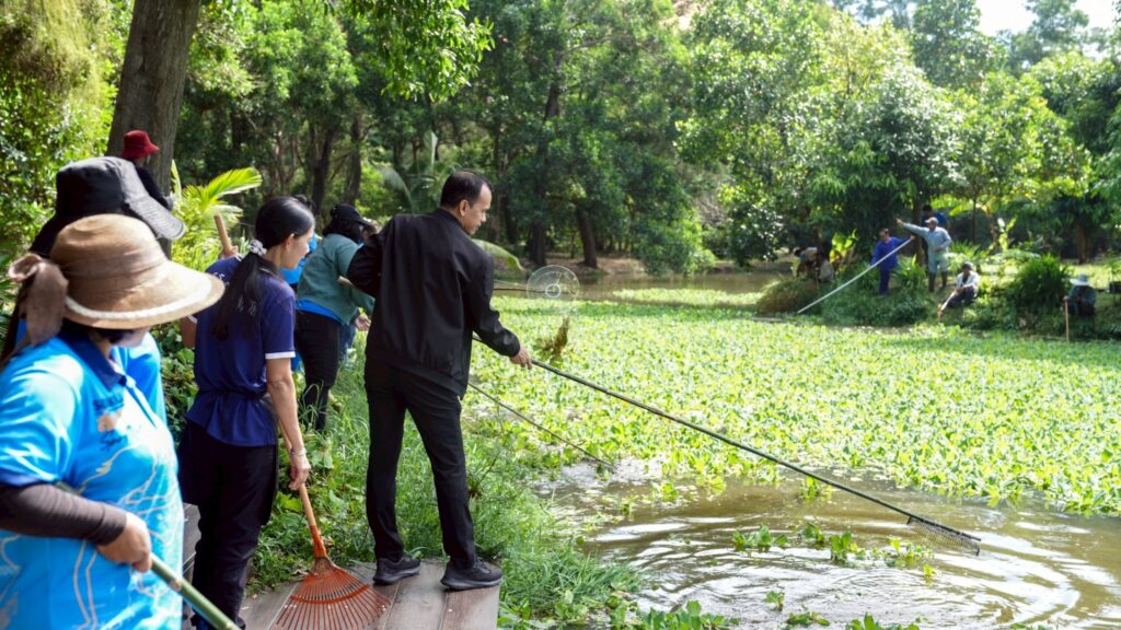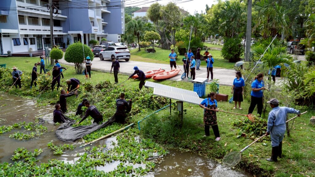 วันที่ 5 กันยายน 2568 ผศ.พิเชษฐ์ จันทวี รักษาราชการแทนอธิการบดีมหาวิทยาลัยราชภัฏสงขลา (มรภ.สงขลา) มอบหมายให้ ผศ.ดร.กันตภณ มะหาหมัด รองอธิการบดีฝ่ายบริหารและพัฒนาหน่วยงาน นำเจ้าหน้าที่งานบริการสถานที่และสิ่งแวดล้อม กองกลาง สำนักงานอธิการบดี และพนักงานบริการของมหาวิทยาลัย พัฒนาพื้นที่ปรับปรุงภูมิทัศน์ กำจัดวัชพืช จอกแหน บริเวณสระน้ำด้านข้างหอประชุมเฉลิมพระเกียรติฯ ด้านหลังอาคารสงขลาพาเลซ และป้อมยามประตู 3