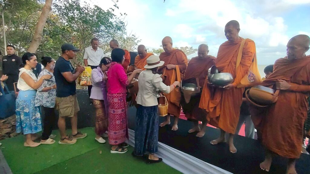 จากนั้นได้จัดพิธีตักบาตรพระสงฆ์จำนวน 9 รูป เพื่อความเป็นสิริมงคลแก่ผู้เข้าร่วมงาน ท่ามกลางบรรยากาศแห่งศรัทธาและความอบอุ่นของชุมชน