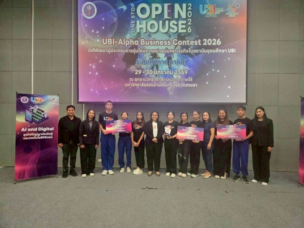 ศูนย์บ่มเพาะธุรกิจ สถาบันวิจัยและพัฒนา มรภ.สงขลา ผนึกกำลังโรงเรียนมหาวชิราวุธ ปั้นนักเรียนนักศึกษาโชว์ศักยภาพเวทีระดับภูมิภาค “UBI-Alpha: Business Contest 2026” ประกาศความสำเร็จครั้งใหญ่ ทีม “Synergy” ตัวแทนกลุ่มธุรกิจอาหารแห่งอนาคต ผงาดคว้าแชมป์ พร้อมดันอีก 2 ทีมแกร่ง กลุ่มธุรกิจสีเขียวและกลุ่มเทคโนโลยีดิจิทัลทะลุรอบ Final