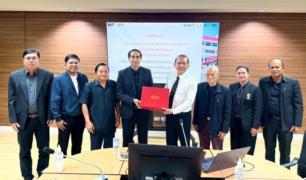 เมื่อวันที่ 23-24 กุมภาพันธ์ 2569 มหาวิทยาลัยราชภัฏสงขลา (มรภ.สงขลา) นำโดย ผศ.พิเชษฐ์ จันทวี อธิการบดี มรภ.สงขลา นำคณะกรรมการขับเคลื่อนการจัดตั้งหน่วยงานในการจัดการศึกษาในจังหวัดสตูล เดินหน้ายกระดับการบริหารจัดการการศึกษา ลงพื้นที่ศึกษาดูงานวิทยาลัยเทคโนโลยีอุตสาหกรรมและการจัดการ มหาวิทยาลัยเทคโนโลยีราชมงคลศรีวิชัย (มทร.ศรีวิชัย) วิทยาเขตนครศรีธรรมราช (พื้นที่อำเภอขนอม) โดยมี ผศ.ไพโรจน์ แสงอำไพ ผู้อำนวยการวิทยาลัยเทคโนโลยีอุตสาหกรรมและการจัดการ และ นางสาวเนตรลดา ละอองทอง หัวหน้าสำนักงานผู้อำนวยการ ให้การต้อนรับ