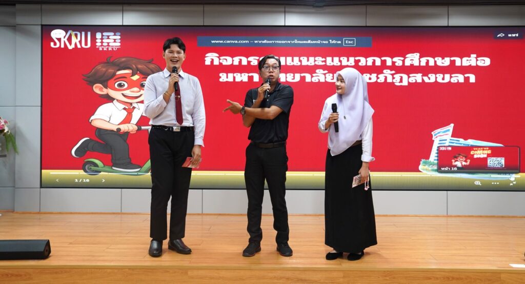 เมื่อวันที่ 12 กุมภาพันธ์ 2569 ผศ.พิเชษฐ์ จันทวี อธิการบดีมหาวิทยาลัยราชภัฏสงขลา (มรภ.สงขลา) มอบหมายให้สำนักส่งเสริมวิชาการและงานทะเบียน มรภ.สงขลา นำโดย อาจารย์ธีรวุฒิ แก้วมาก รองผู้อำนวยการสำนักส่งเสริมวิชาการและงานทะเบียน พร้อมด้วยเจ้าหน้าที่สำนักส่งเสริมวิชาการและงานทะเบียน ให้การต้อนรับคณะครูและนักเรียนจากโรงเรียนดรุณศาสน์วิทยา อ.สายบุรี จ.ปัตตานี ณ ห้องประชุมวิชัย รัตนากีรณวร ชั้น 2 คณะวิทยาศาสตร์และเทคโนโลยี มรภ.สงขลา