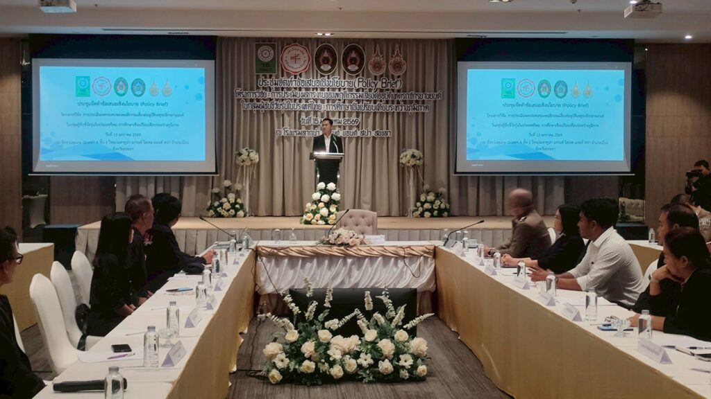 เมื่อวันที่ 15 มกราคม 2569 มหาวิทยาลัยศรีนครินทรวิโรฒ (มศว) นำโดย รศ.ดร.ชมพูนุท โกสลากร เพิ่มพูนวิวัฒน์ หัวหน้าโครงการวิจัยฯ ร่วมกับมหาวิทยาลัยราชภัฏสงขลา (มรภ.สงขลา) นำโดย รศ.ดร.คมวิทย์ ศิริธร ผู้ช่วยอธิการบดี ในฐานะภาคีเครือข่ายวิจัยในพื้นที่ภาคใต้ ประชุมจัดทำข้อเสนอเชิงนโยบาย (Policy Brief) โครงการวิจัยการประเมินผลกระทบของพฤติกรรมเสี่ยงต่ออุบัติเหตุรถจักรยานยนต์ในกลุ่มผู้ขับขี่วัยรุ่นในประเทศไทย : การศึกษาเชิงเปรียบเทียบระหว่างภูมิภาค ณ ห้องประชุม ชั้น 1 โรงแรมลากูน่า แกรนด์ โฮเทล แอนด์ สปา อำเภอเมืองสงขลา จังหวัดสงขลา ได้รับเกียรติจาก นายรอมดอน หะยีอาแว รองผู้ว่าราชการจังหวัดสงขลา เป็นประธานในพิธีเปิด พร้อมด้วย พ.ต.อ.บุญส่งวิทย์ ห้องแซง รองผู้บังคับการตำรวจภูธรจังหวัดสงขลา และผู้แทนส่วนราชการ องค์กรปกครองส่วนท้องถิ่น นักเรียน นักศึกษา ภาคีเครือข่ายที่เกี่ยวข้องเข้าร่วมการประชุม