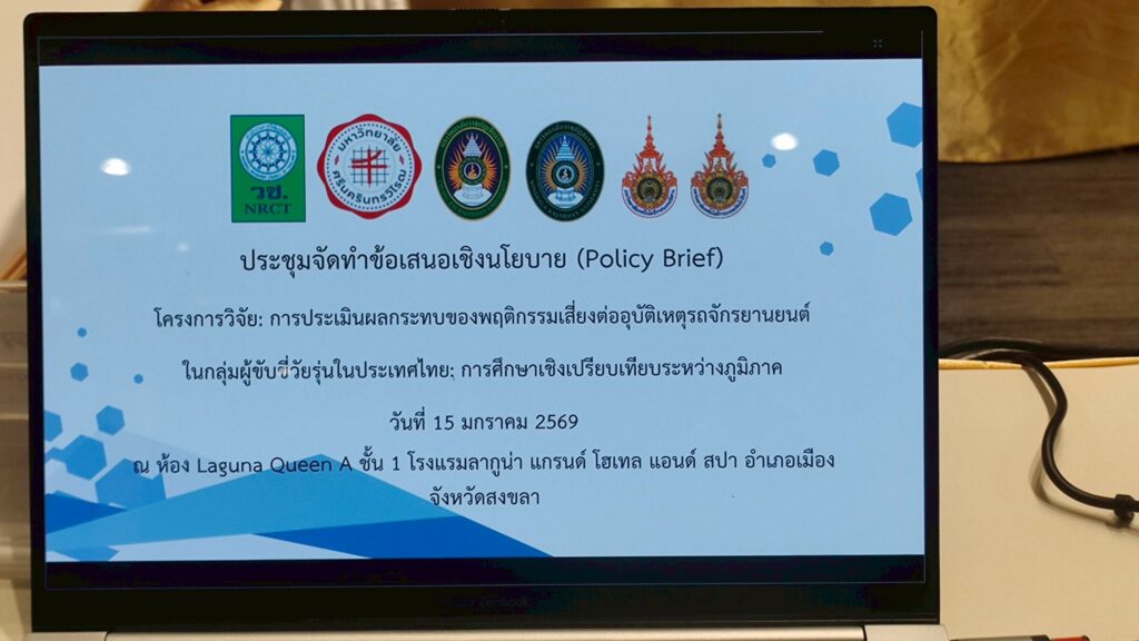 “มศว” จับมือนักวิชาการ มรภ.สงขลา และภาคีเครือข่ายพื้นที่ภาคใต้ ประชุมจัดทำข้อเสนอเชิงนโยบายโครงการวิจัยการประเมินผลกระทบของพฤติกรรมเสี่ยงต่ออุบัติเหตุรถจักรยานยนต์ในกลุ่มผู้ขับขี่วัยรุ่นในประเทศไทย : การศึกษาเชิงเปรียบเทียบระหว่างภูมิภาค วิเคราะห์พฤติกรรมเสี่ยงพร้อมหาทางออกลดความสูญเสียวัยรุ่นอายุ 15-24 ปี กลุ่มประชากรที่มีความเสี่ยงสูงสุดซึ่งเป็นกำลังสำคัญของชาติ และลดความสูญเสียทางเศรษฐกิจมูลค่า 6 แสนล้านบาทต่อปี