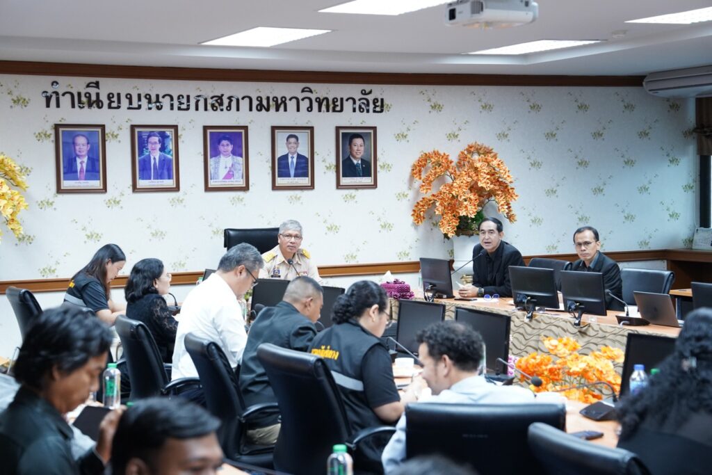เมื่อวันที่ 2 กุมภาพันธ์ 2569 ผศ.พิเชษฐ์ จันทวี อธิการบดีมหาวิทยาลัยราชภัฏสงขลา (มรภ.สงขลา) พร้อมด้วยคณะผู้บริหารและบุคลากรที่เกี่ยวข้อง ให้การต้อนรับ นายชูชีพ ธรรมเพชร รองผู้ว่าราชการจังหวัดสงขลา พร้อมคณะทำงาน ณ ห้องประชุมอรัญ ธรรมโน ชั้น 8 อาคารอำนวยการ มรภ.สงขลา ในโอกาสลงพื้นที่ติดตามและเร่งรัดการใช้จ่ายงบประมาณเงินกันไว้เบิกเหลื่อมปี ประจำปีงบประมาณ พ.ศ. 2568 ของ มรภ.สงขลา