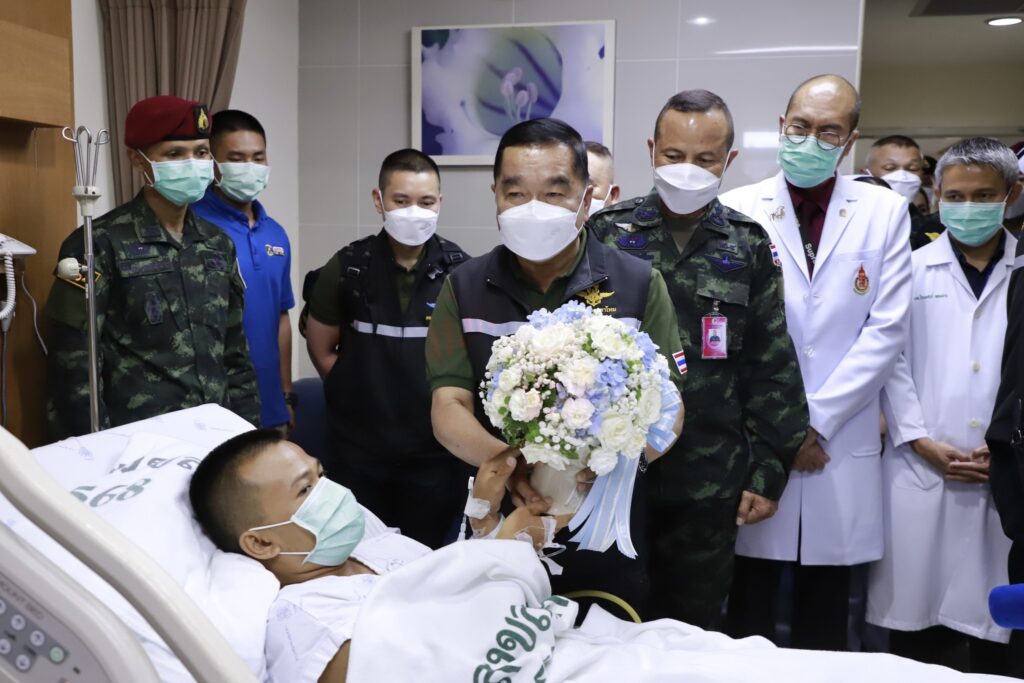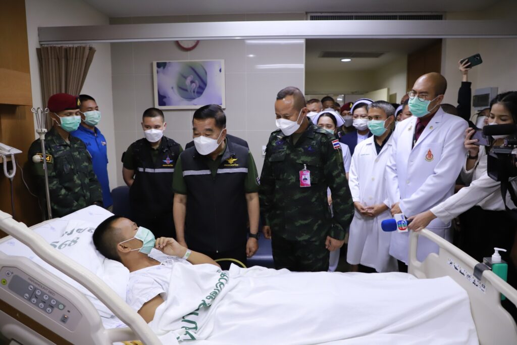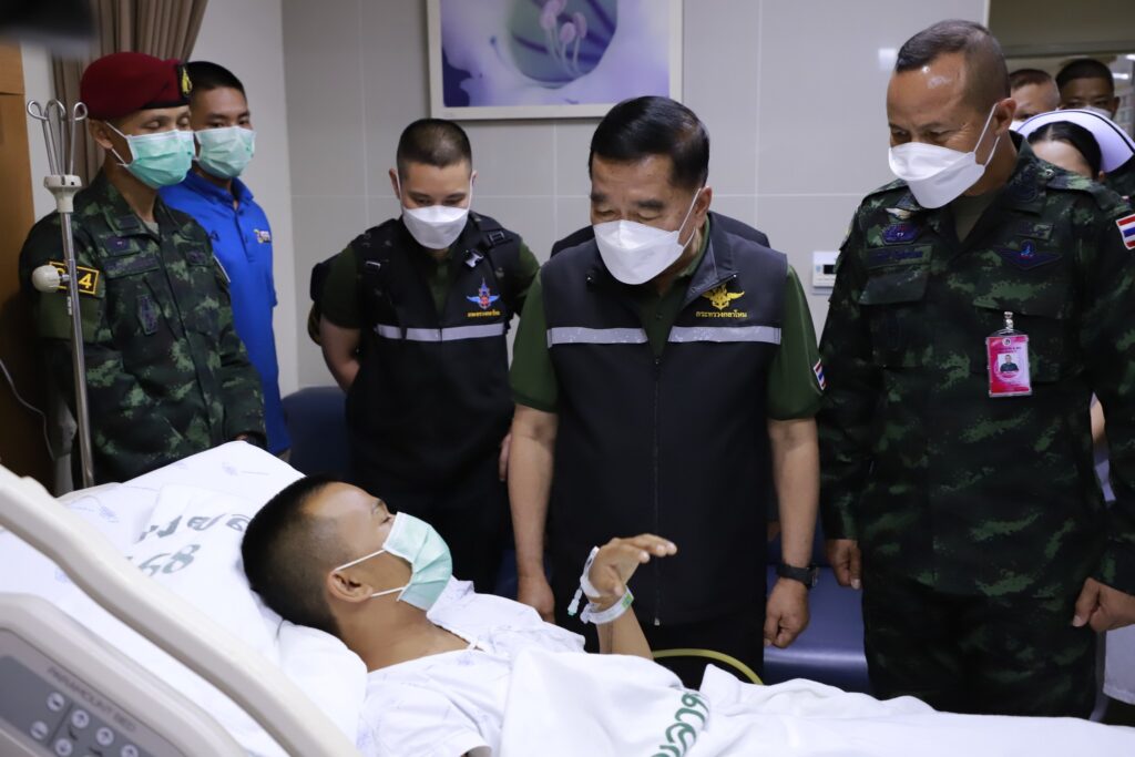 ในการนี้ พลเอก ณัฐพล นาควานิช รัฐมนตรีว่าการกระทรวงกลาโหม พร้อมด้วย พลโท นรธิป โพยนอก แม่ทัพภาคที่ 4 / ผู้อำนวยการรักษาความมั่นคงภายในภาค 4 ได้พูดคุยให้กำลังใจ พร้อมมอบกระเช้าเยี่ยมในนามของนายกรัฐมนตรี เพื่อเป็นขวัญและกำลังใจแก่ผู้ได้รับบาดเจ็บ