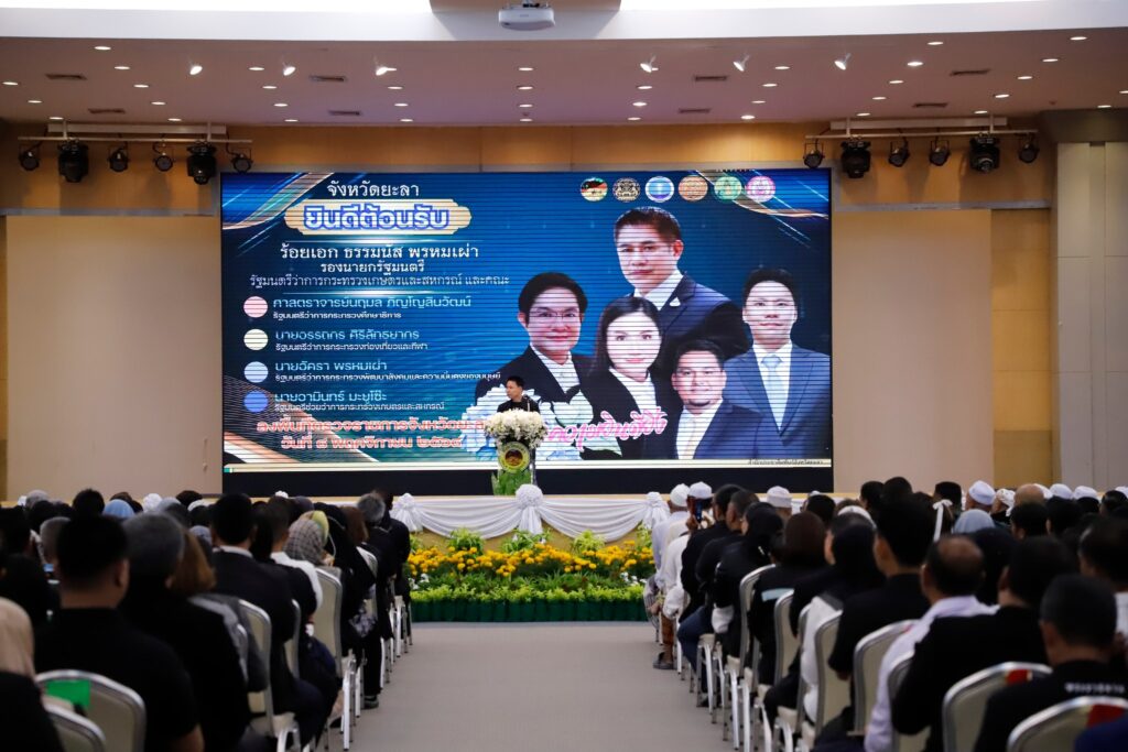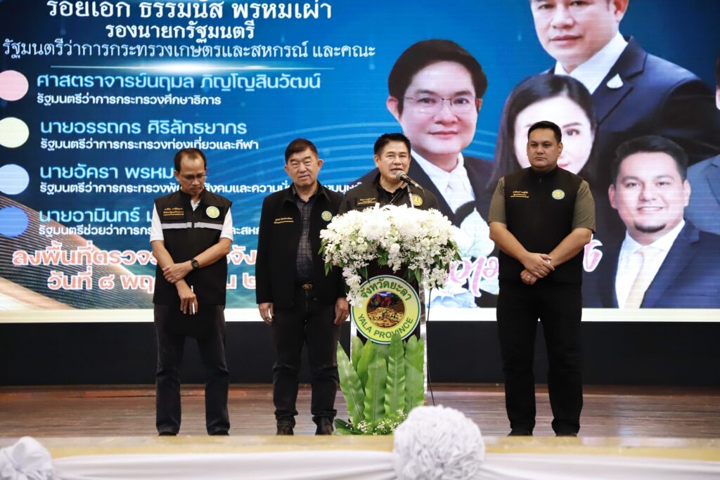ภายในงาน รองนายกรัฐมนตรีและรัฐมนตรีว่าการกระทรวงเกษตรและสหกรณ์ ได้มอบนโยบายสำคัญแก่หัวหน้าส่วนราชการ ผู้บริหารองค์กรปกครองส่วนท้องถิ่น กำนัน ผู้ใหญ่บ้าน และผู้นำชุมชนในพื้นที่ เพื่อเป็นแนวทางในการขับเคลื่อนการพัฒนาจังหวัดยะลาให้สอดคล้องกับนโยบายของรัฐบาล พร้อมทั้งรับฟังรายงานสถานการณ์น้ำท่วมและปัญหาความเดือดร้อนของประชาชน รวมถึงข้อเสนอในการพัฒนาด้านเกษตร การศึกษา การท่องเที่ยว และสังคมอย่างรอบด้าน จากนั้นได้ เยี่ยมชมนิทรรศการบูรณาการจาก 4 กระทรวงหลัก ที่นำเสนอผลงานและกิจกรรมเพื่อการพัฒนาคุณภาพชีวิตของประชาชนในพื้นที่ อาทิ การมอบโฉนดที่ดินเพื่อการเกษตร การมอบหนังสืออนุญาตให้เข้าทำประโยชน์ในที่ดิน และการส่งมอบอุปกรณ์ช่วยเหลือผู้พิการ