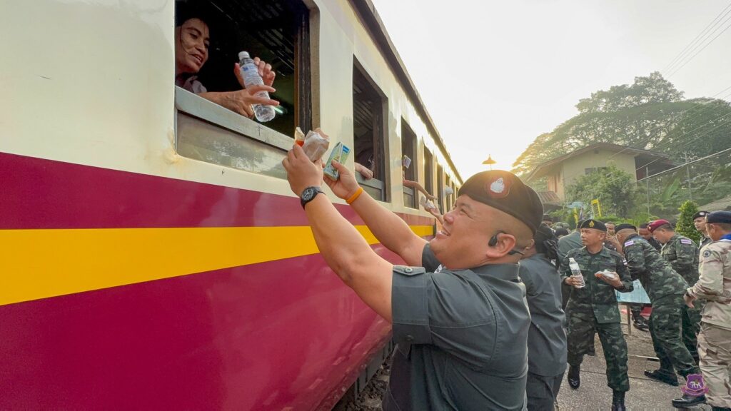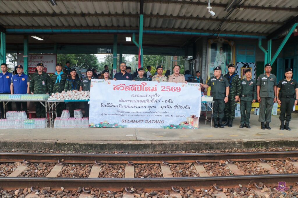 วันนี้ ( 31ธันวาคม 2568 ) เวลา 06.30 น. พลตรี ชาคริต อุจะรัตน รองแม่ทัพภาคที่ 4 /รองผู้อำนวยการรักษาความมั่นคงภายในภาค 4 ส่วนหน้า นำกำลังพลหน่วยเฉพาะกิจสงขลา 40 , หน่วยเฉพาะกิจตำรวจตระเวนชายแดนที่ 43 , ชุดสันติสุขที่ 501 ชุดควบคุมที่ 955 หน่วยเฉพาะกิจสันติสุข, ศูนย์ปฏิบัติการอำเภอจะนะ, สถานีตำรวจภูธรจะนะ และสถานีรถไฟจะนะ ลงพื้นที่เทศบาลตำบลบ้านนา อ.จะนะ จ.สงขลา เพื่อดูแลความเรียบร้อย รักษาความปลอดภัย และอํานวยความสะดวกให้แก่ประชาชนที่สัญจรกลับภูมิลำเนาด้วยรถไฟโดยสารตามตู้รถไฟ และสถานีรถไฟจุดสําคัญของพื้นที่ภาคใต้ตอนล่าง ในช่วงเทศกาลปีใหม่ 2569 พร้อมกันนี้ยังได้ส่งต่อความสุข ความอบอุ่นใจ ผ่านการมอบ “ข้าวเหนียวไก่ทอด” เมนูเรียบง่ายแต่เปี่ยมด้วยความใส่ใจ ถูกส่งมอบจากมือเจ้าหน้าที่สู่มือประชาชน พร้อมนมและน้ำดื่ม เพื่อช่วยลดภาระค่าใช้จ่ายและเป็นเสบียงระหว่างการเดินทางไกล สิ่งเหล่านี้คือสัญลักษณ์ของการดูแลกันและกันในสังคมพหุวัฒนธรรม ที่ความแตกต่างไม่ได้เป็นอุปสรรคต่อการส่งมอบความปรารถนาดี “เพื่อให้ทุกการเดินทางเปี่ยมไปด้วยความปลอดภัย”