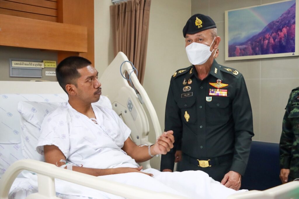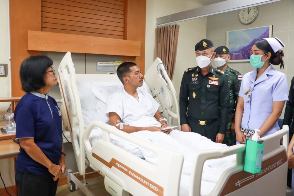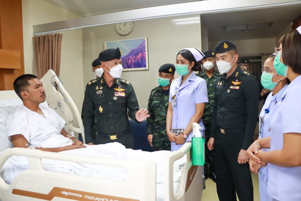 ในโอกาสนี้ รองแม่ทัพภาคที่ 4 / รองผู้อำนวยการรักษาความมั่นคงภายในภาค 4 ส่วนหน้า พร้อมคณะผู้บังคับบัญชา ได้พบปะพูดคุยสอบถามถึงเหตุการณ์และอาการ พร้อมให้กำลังใจผู้ที่ได้รับบาดเจ็บและครอบครัว เพื่อเป็นขวัญกำลังใจ ขอให้หายจากอาการบาดเจ็บโดยเร็ว พร้อมกลับมาปฏิบัติหน้าที่เพื่อดูแลความปลอดภัยให้กับพี่น้องประชาชนในพื้นที่ต่อไป