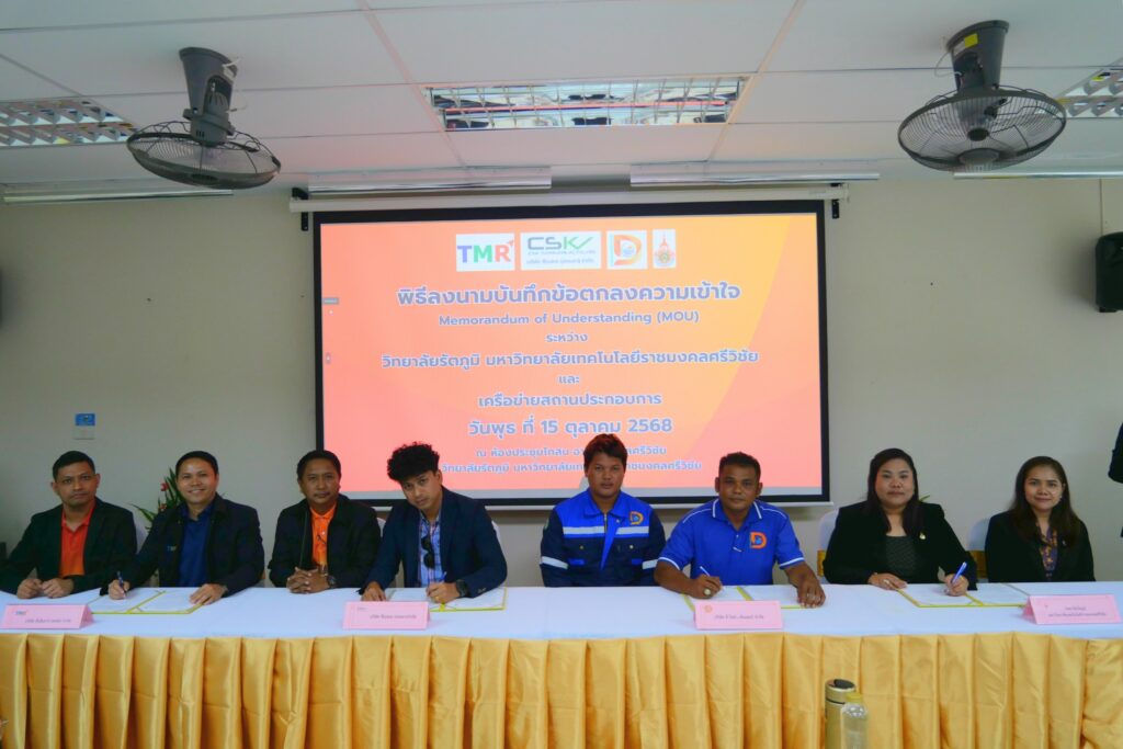 วิทยาลัยรัตภูมิ มหาวิทยาลัยเทคโนโลยีราชมงคลศรีวิชัย จัดพิธีลงนามบันทึกข้อตกลงความเข้าใจ (MOU) ร่วมกับเครือข่ายสถานประกอบการ เพื่อส่งเสริมและพัฒนาศักยภาพทางด้านวิชาการ การวิจัย การจัดกิจกรรมนักศึกษา และการบริหารจัดการองค์กรให้มีประสิทธิภาพร่วมกัน