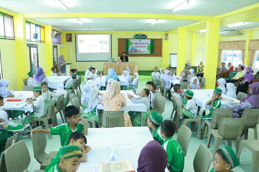 วันนี้ ( 9 กันยายน 2567 ) เวลา 09.30 น. ที่ศูนย์พัฒนาทักษาะภาษาเพื่อการสื่อสาร โรงเรียนอามานะศักดิ์ อำเภอเมืองปัตตานี จังหวัดปัตตานี นายนิกร เซ้งเถียร ผู้อำนวยการศูนย์ขับเคลื่อนการศึกษาในจังหวัดชายแดนภาคใต้ พร้อมด้วย บุคลากรกลุ่มส่งเสริมการศึกษาจังหวัดชายแดนภาคใต้ ติดตามการขยายผลการดำเนินงานศูนย์พัฒนาทักษะ เพื่อการสื่อสารในโครงการส่งเสริมการใช้ภาษาเพื่อการสื่อสารในจังหวัดชายแดนใต้ กิจกรรมที่ 3 ประจำปีงบประมาณ พ.ศ. 2567 โดยกิจกรรม ประกอบด้วย พิธีเปิดศูนย์ฯ เปิดบ้าน สร้างการรับรู้ และกิจกรรมส่งเสริมการใช้ภาษาเพื่อการสื่อสารให้ผู้รับบริการ ผู้เรียน ผู้ปกครอง และชุมชน มีส่วนร่วม รวมทั้งส่งเสริมให้ผู้เรียนอายุ 4 – 7 ปี ได้แสดงความสามารถด้านการฟัง พูด อ่าน เขียน การเล่านิทาน การสื่อสารต่าง ๆ โดยจัดให้ผู้ปกครอง ประชาชน ชุมชน มีส่วนร่วม และถอดบทเรียน แลกเปลี่ยนเรียนรู้