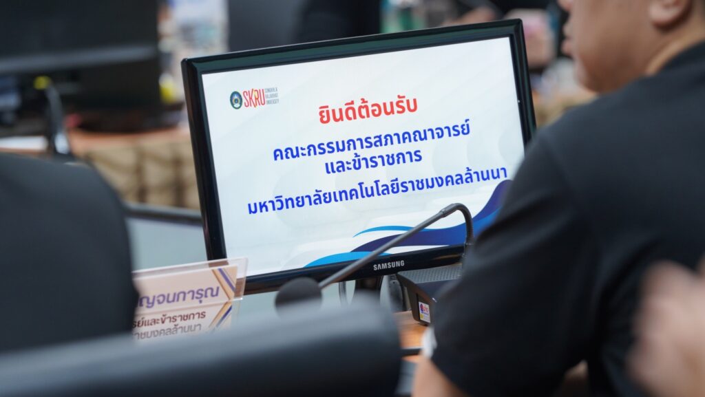 เมื่อวันที่ 26 กุมภาพันธ์ 2569 ผศ.พิเชษฐ์ จันทวี อธิการบดีมหาวิทยาลัยราชภัฏสงขลา (มรภ.สงขลา) พร้อมด้วย ผศ.ดร.กรฤต นิลวานิช รองอธิการบดีฝ่ายกายภาพและพัฒนาท้องถิ่น และกรรมการสภาคณาจารย์และข้าราชการ มรภ.สงขลา นำโดย ผศ.ชาญวิทย์ จันทร์อินทร์ ประธานสภาคณาจารย์และข้าราชการ นายชัยสิทธิ์ บุญรังศรี รองประธานกรรมการ ให้การต้อนรับกรรมการสภาคณาจารย์และข้าราชการ มหาวิทยาลัยเทคโนโลยีราชมงคลล้านนา (มทร.ล้านนา) จ.เชียงใหม่ ซึ่งนำโดย ผศ.จักรพันธุ์ รอดทรัพย์ ประธานกรรมการ พร้อมคณะ ณ ห้องประชุมอรัญ อรัญ ธรรมโน ชั้น 8 อาคารอำนวยการ มรภ.สงขลา ในโอกาสเดินทางมาแลกเปลี่ยนเรียนรู้การบริหารจัดการงานสภาคณาจารย์และข้าราชการ