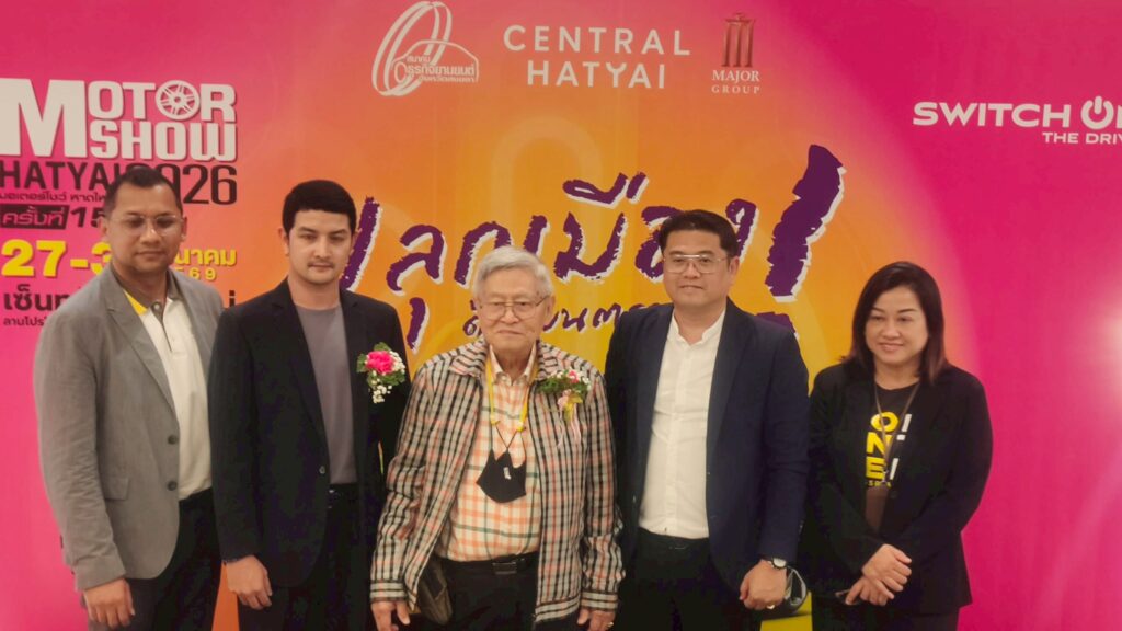 เมื่อช่วงบ่ายวันที่ 27 กุมภาพันธ์ 2569 ณ ศูนย์การค้าเซ็นทรัลหาดใหญ่ คุณณรงค์ ตั้งภัสสรเรือง นายกสมาคมการค้าธุรกิจยานยนต์จังหวัดสงขลา พร้อมด้วยคุณอัฟนันต์ เจ๊ะโว๊ะ หัวหน้าแผนกกลยุทธ์การตลาด ศูนย์การค้าเซ็นทรัลหาดใหญ่ ร่วมแถลงความพร้อมการจัดงาน “มอเตอร์โชว์หาดใหญ่ 2026” ซึ่งปีนี้จัดขึ้นเป็นครั้งที่ 15 ภายใต้สโลแกน “Switch on the Drive – ปลุกเมืองด้วยยนตรกรรม”