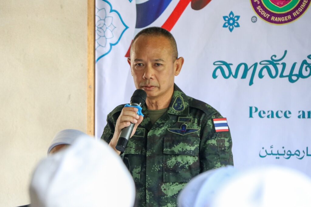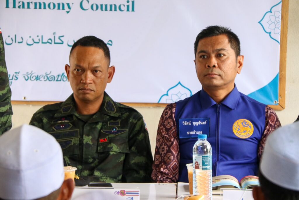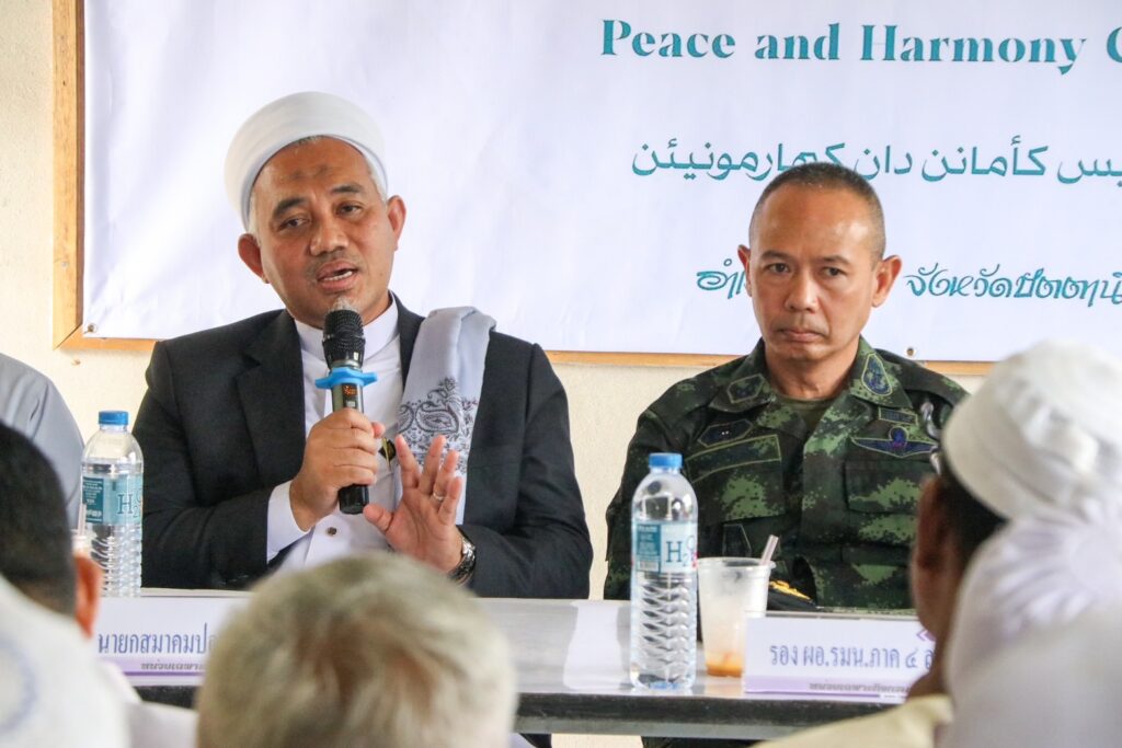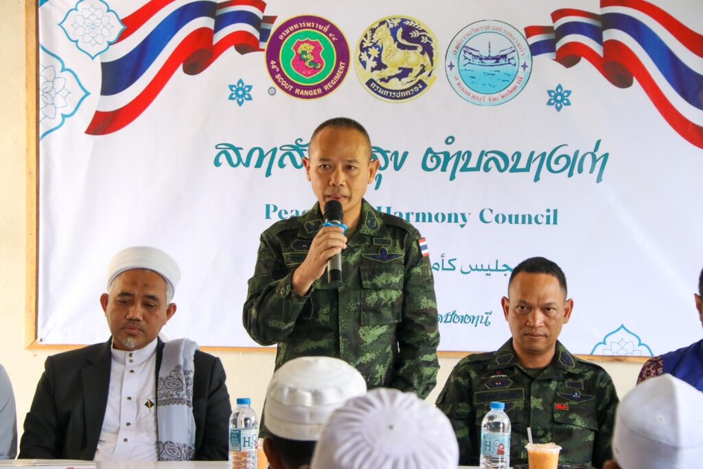 โอกาสนี้ พลตรี ชาคริต อุจะรัตน รองแม่ทัพภาคที่ 4 / รองผู้อำนวยการรักษาความมั่นคงภายในภาค 4 ส่วนหน้า ได้กล่าวขอบคุณผู้นำศาสนา ผู้นำท้องถิ่น และพี่น้องประชาชนที่ร่วมมือกันขับเคลื่อนงานเพื่อสร้างสันติสุขในพื้นที่ โดยสภาสันติสุขตำบลถือเป็นกลไกสำคัญในการประสานความร่วมมือระหว่างภาครัฐกับพี่น้องประชาชน เพื่อแก้ไขปัญหาและพัฒนาในรูปแบบประชาธิปไตยที่พี่น้องประชาชนมีส่วนร่วมอย่างแท้จริง “เหตุการณ์ที่เกิดขึ้นในพื้นที่ เป็นสิ่งที่ไม่มีใครต้องการให้เกิด โดยเฉพาะเมื่อเกี่ยวข้องกับสถาบันการศึกษาศาสนาอิสลามซึ่งเป็นรากเหง้าและศูนย์กลางการเรียนรู้ของลูกหลานในพื้นที่มายาวนาน รัฐบาลและเจ้าหน้าที่ทุกภาคส่วน ล้วนให้ความสำคัญกับสถาบันปอเนาะ ในฐานะสถาบันการศึกษาซึ่งเป็นแหล่งสร้างสรรค์คนดี อันจะเป็นพลังสำคัญของสังคมในอนาคตต่อไป”
