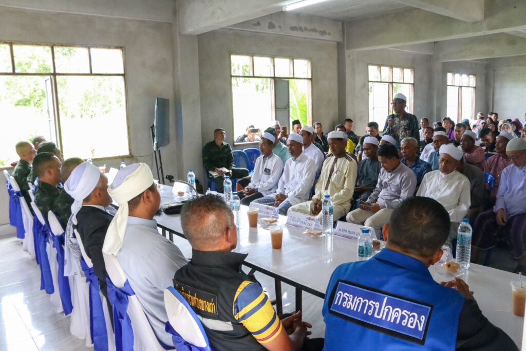 วันนี้ (22 ตุลาคม 2568) เวลา 08.30 น. ที่ สถาบันปอเนาะ มอ์หัด อัตตัรบียาดุลฮะดีซะห์ หมู่ที่ 4 ตำบลบางเก่า อำเภอสายบุรี จังหวัดปัตตานี พลตรี ชาคริต อุจะรัตน รองแม่ทัพภาคที่ 4 / รองผู้อำนวยการรักษาความมั่นคงภายในภาค 4 ส่วนหน้า เป็นประธานการประชุมสภาสันติสุขตำบลบางเก่า เพื่อร่วมพูดคุย ปรึกษาหารือ ตลอดจนรับฟังปัญหา ความต้องการ และข้อเสนอแนะของชุมชน เพื่อประสานความร่วมมือระหว่างภาครัฐ – ประชาชน อันจะนำไปสู่การสร้างสันติสุขอย่างยั่งยืนในพื้นที่.