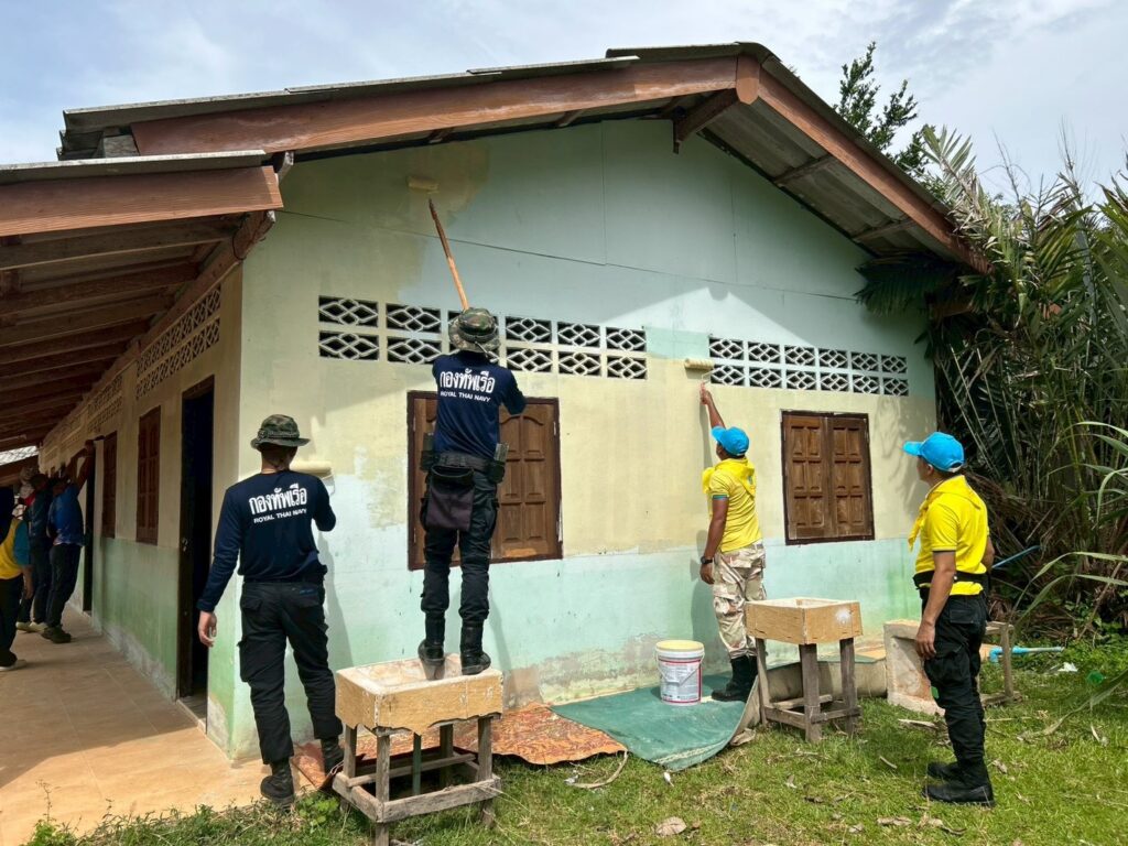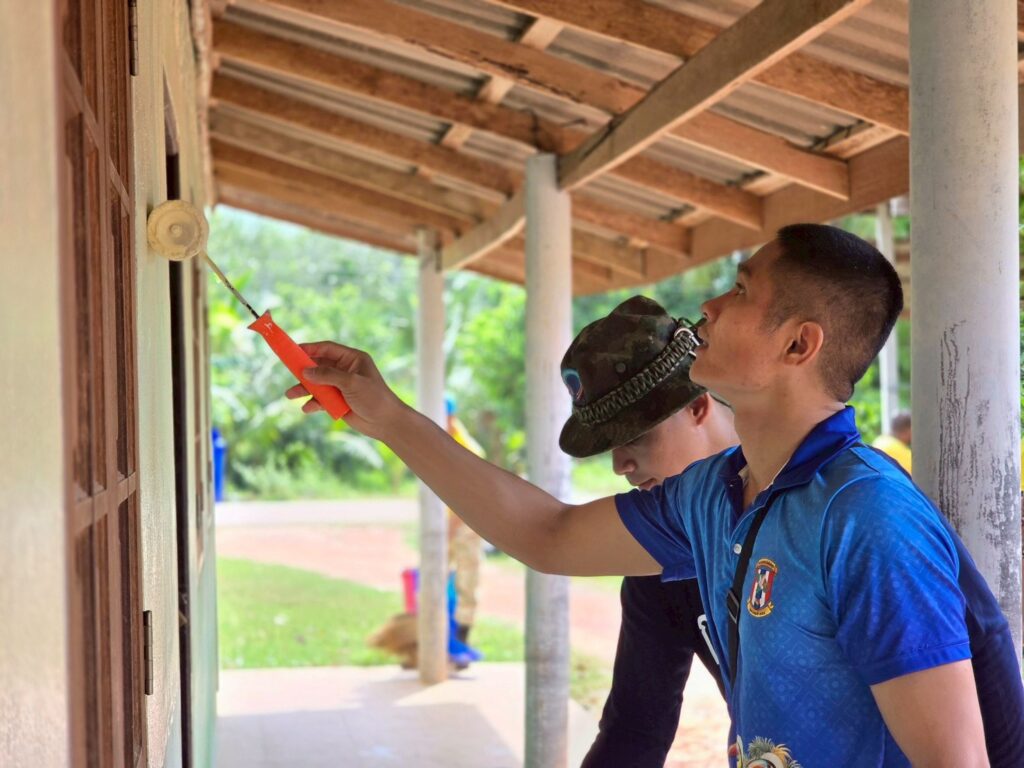 หน่วยเฉพาะกิจสันติสุข โดย ชุดสันติสุขที่ 401 และชุดทักษิณสัมพันธ์ที่ 441 ร่วมกับกองร้อยทหารพรานนาวิกโยธินที่ 8 หน่วยเฉพาะกิจกรมทหารพรานนาวิกโยธินกองทัพเรือ นำเยาวชนพื้นที่อำเภอยี่งอ จากกลุ่มรวมใจไทยเป็นหนึ่ง, กลุ่ม To Be Number One , กลุ่มสภานักเรียนโรงเรียนเอกชนสอนศาสนาจังหวัดนราธิวาส (DSC), กลุ่มโครงการสานใจไทยสู่ใจใต้ อำเภอยี่งอฯ, ผู้นำศาสนา, ผู้นำชุมชนในพื้นที่ และอาสาสมัครกองอาสารักษาดินแดนชุดคุ้มครองตำบลละหาร นำร่องดำเนินกิจกรรมจิตอาสา “ทำความดีด้วยหัวใจ” เติมสีเพื่อน้อง
